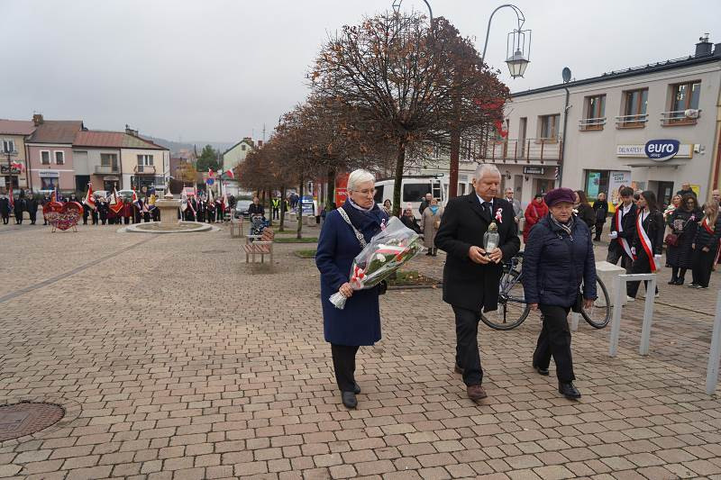 Po zakończeniu Mszy Świętej uczestnicy obchodów przeszli pod pomniki upamiętniające bohaterów walk o niepodległość — znajdujące się na Placu 2 Czerwca oraz przy ul. Małogoskiej. W atmosferze zadumy i wdzięczności złożono kwiaty oraz zapalono znicze, oddając hołd wszystkim, którzy poświęcili życie dla wolnej Polski. Chwilę ciszy przerwały podniosłe pieśni patriotyczne, a biało-czerwone flagi powiewające na wietrze przypominały o dumie z bycia Polakiem.