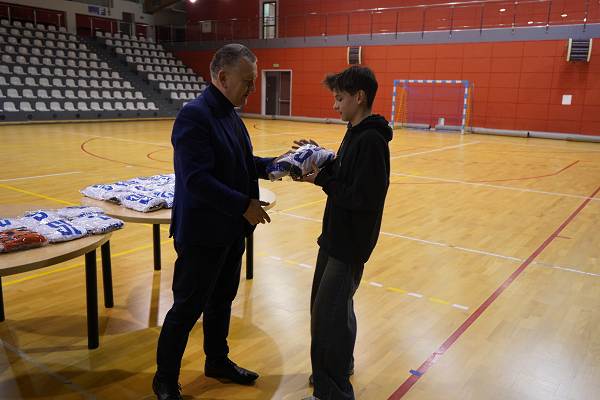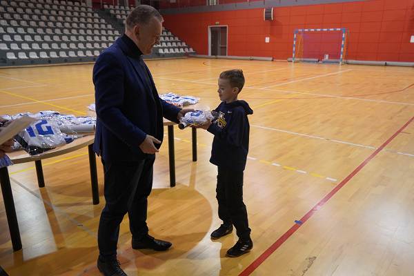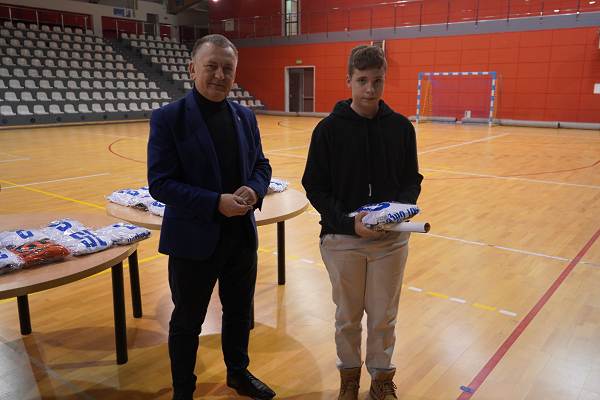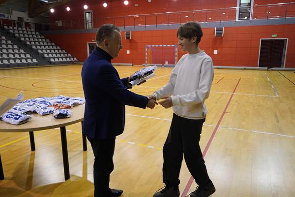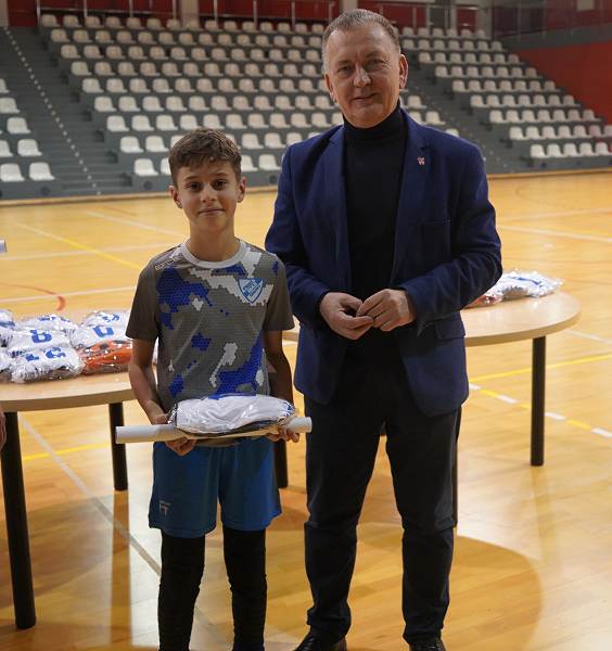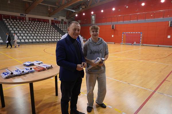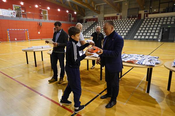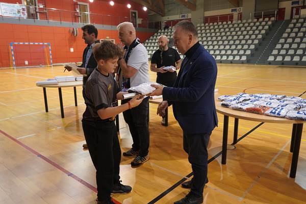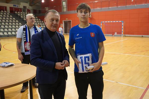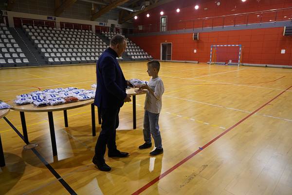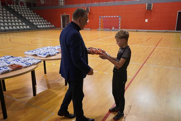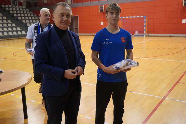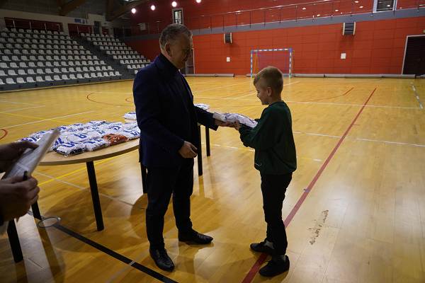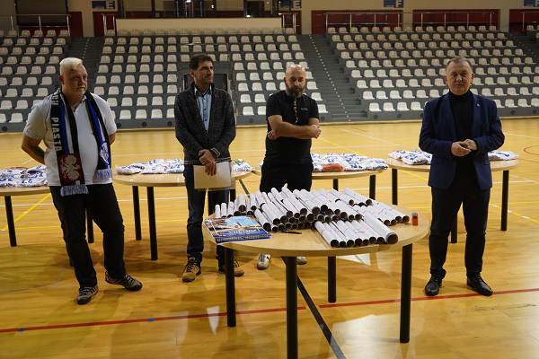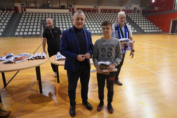 10 grudnia 2025r. w hali w Centrum Kultury i Sportu w Chęcinach, burmistrz Gminy i Miasta Chęciny Robert Jaworski wręczył zawodnikom klubu sportowego Piast Chęciny nowe stroje sportowe