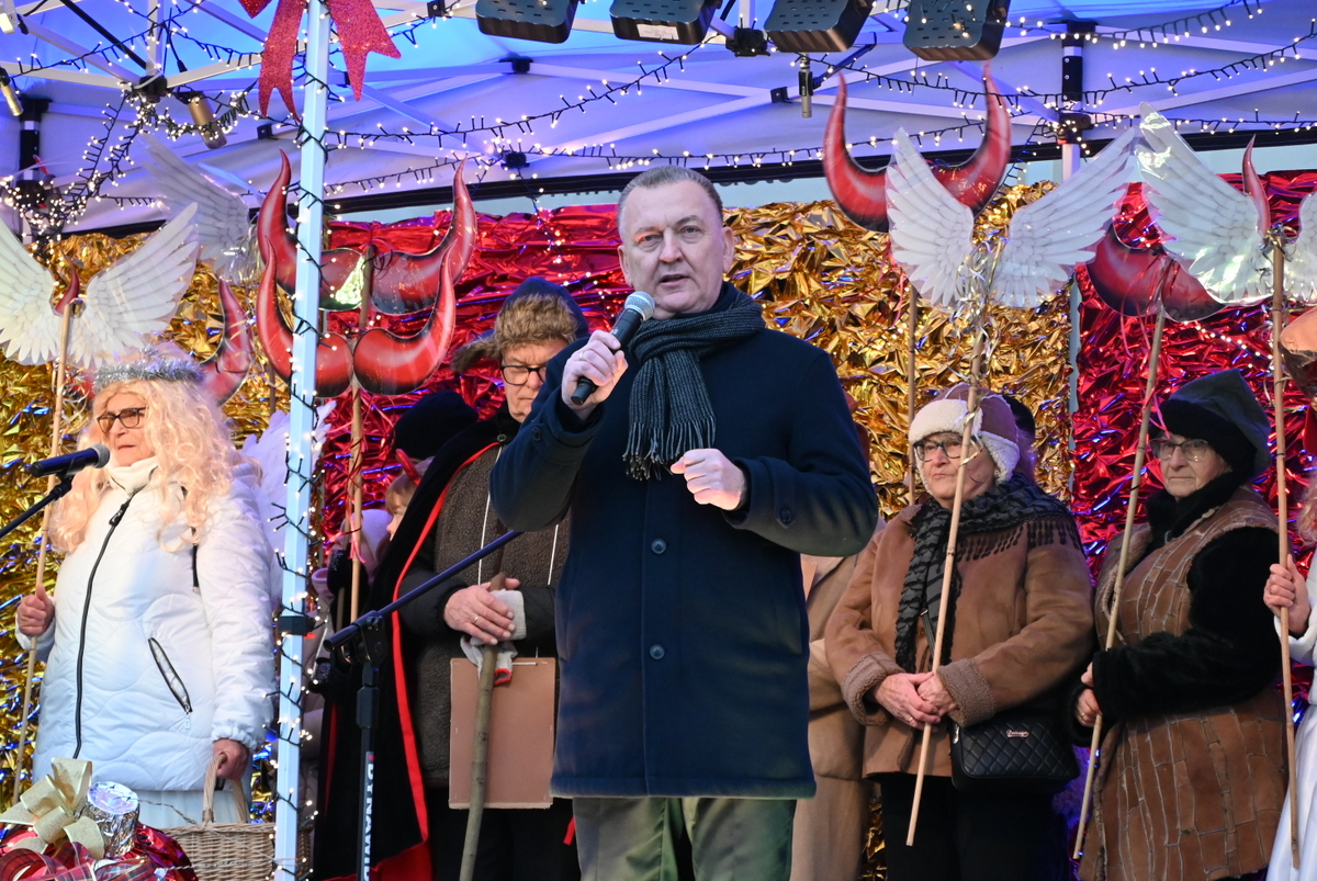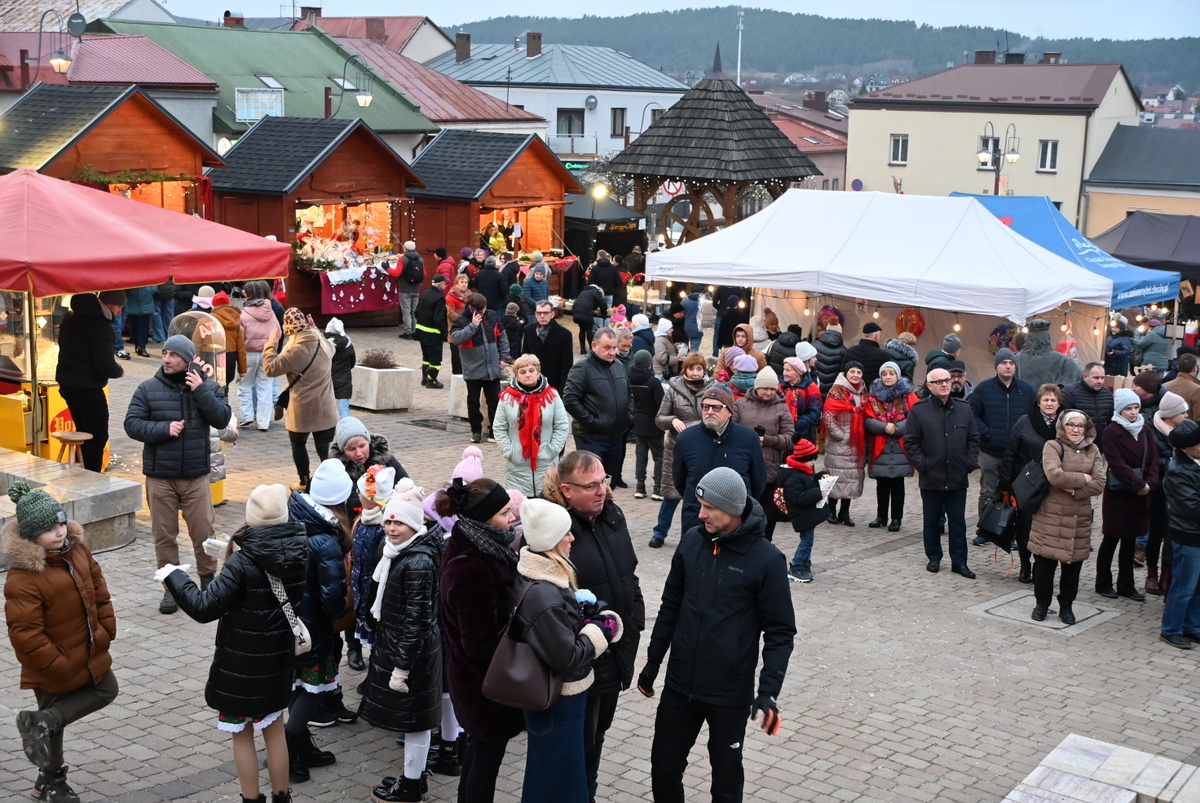 Następnie zgromadzonych na Rynku Górnym powitał burmistrz Robert Jaworski, dziękując mieszkańcom, gościom, wystawcom za obecność i wspólne tworzenie tego wyjątkowego wydarzenia. – Święta Bożego Narodzenia to czas bliskości, rozmów i życzliwości. Dzisiejsze spotkanie pokazuje, jak wielką siłę ma wspólnota, kiedy potrafimy być razem, śpiewać najpiękniejsze polskie kolędy i pastorałki oraz cieszyć się swoją obecnością. Życzę Państwu, aby ta świąteczna atmosfera towarzyszyła nam nie tylko dziś, ale również w domach, przy wigilijnych stołach - w spokoju, życzliwości i radości - mówił burmistrz.