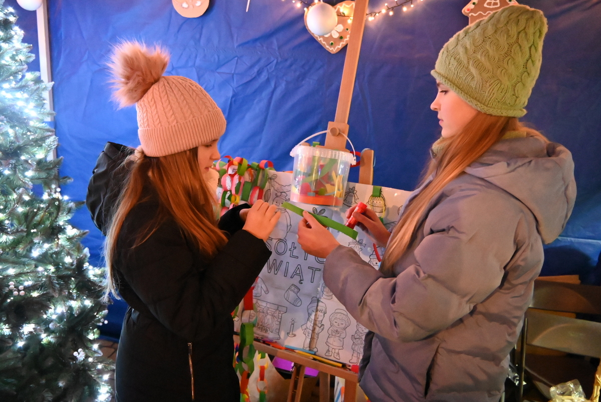 i wykonując zadania w bożonarodzeniowej scenerii. Jak co roku wolontariusze z Lokalnego Centrum Wolontariatu wraz z dziećmi wykonali imponujący łańcuch choinkowy, bijąc kolejny rekord długości.