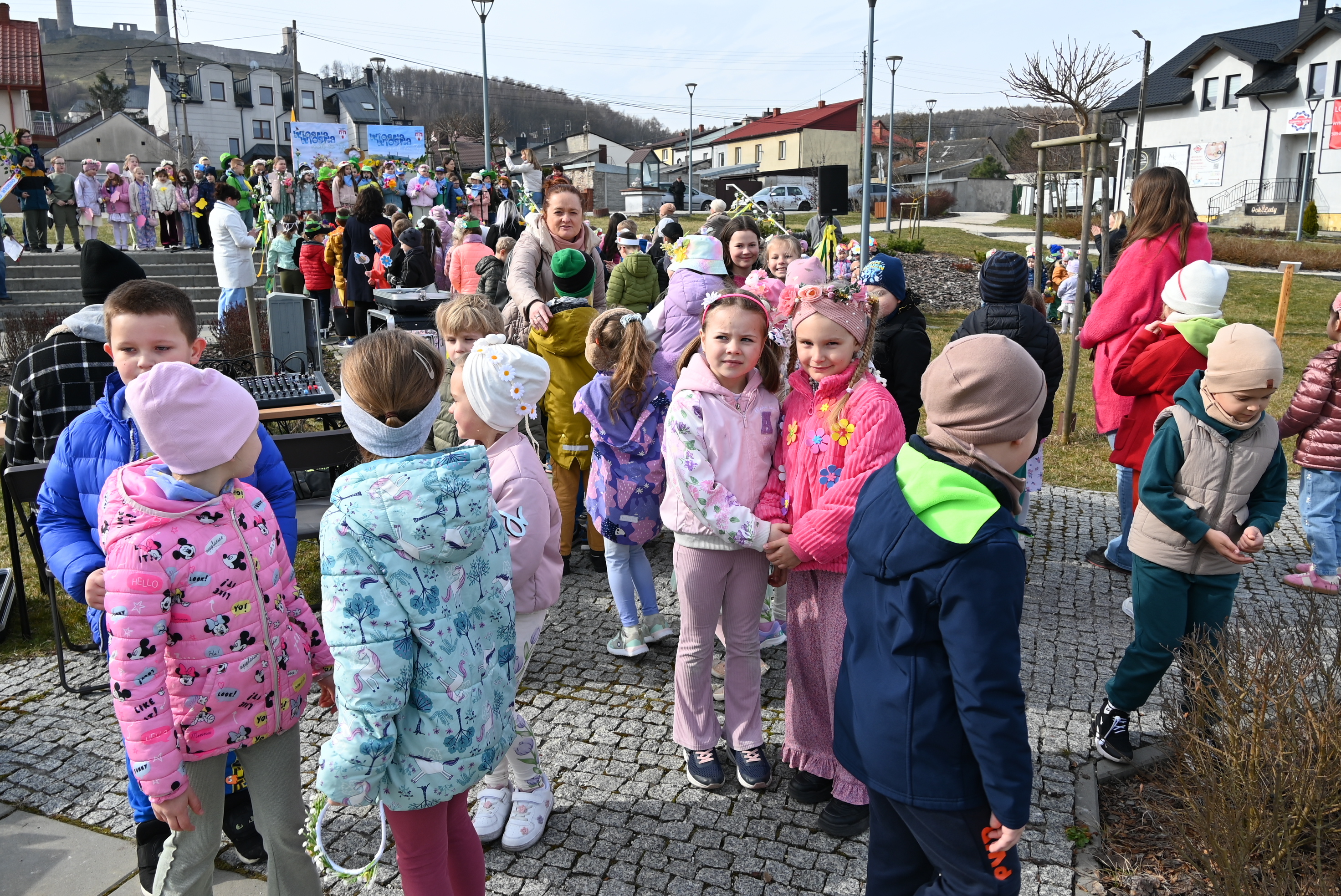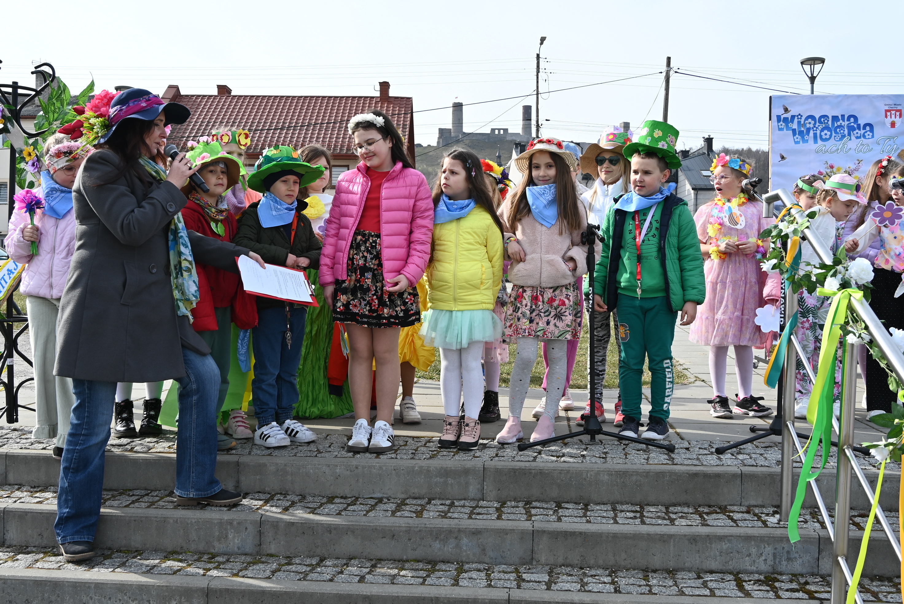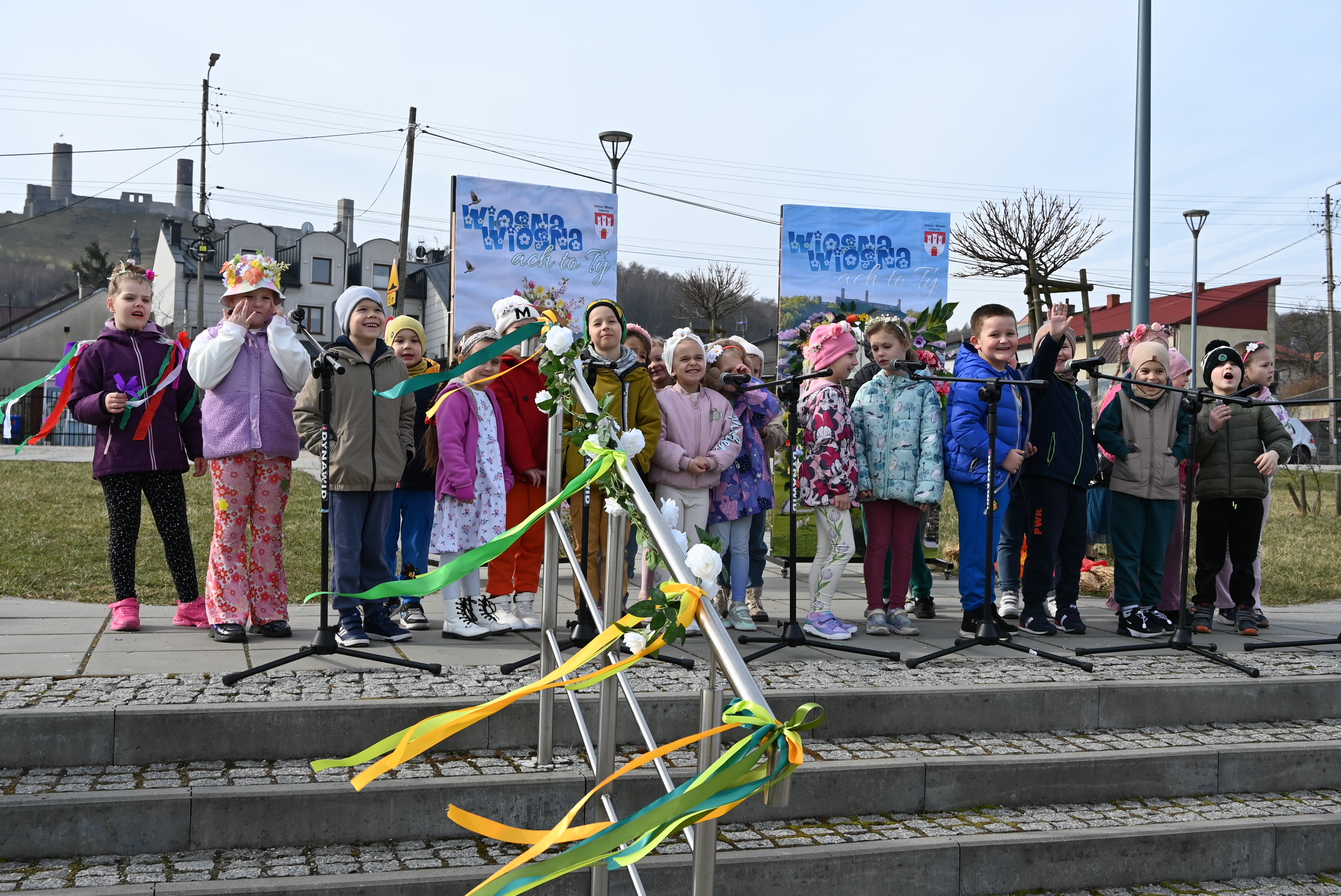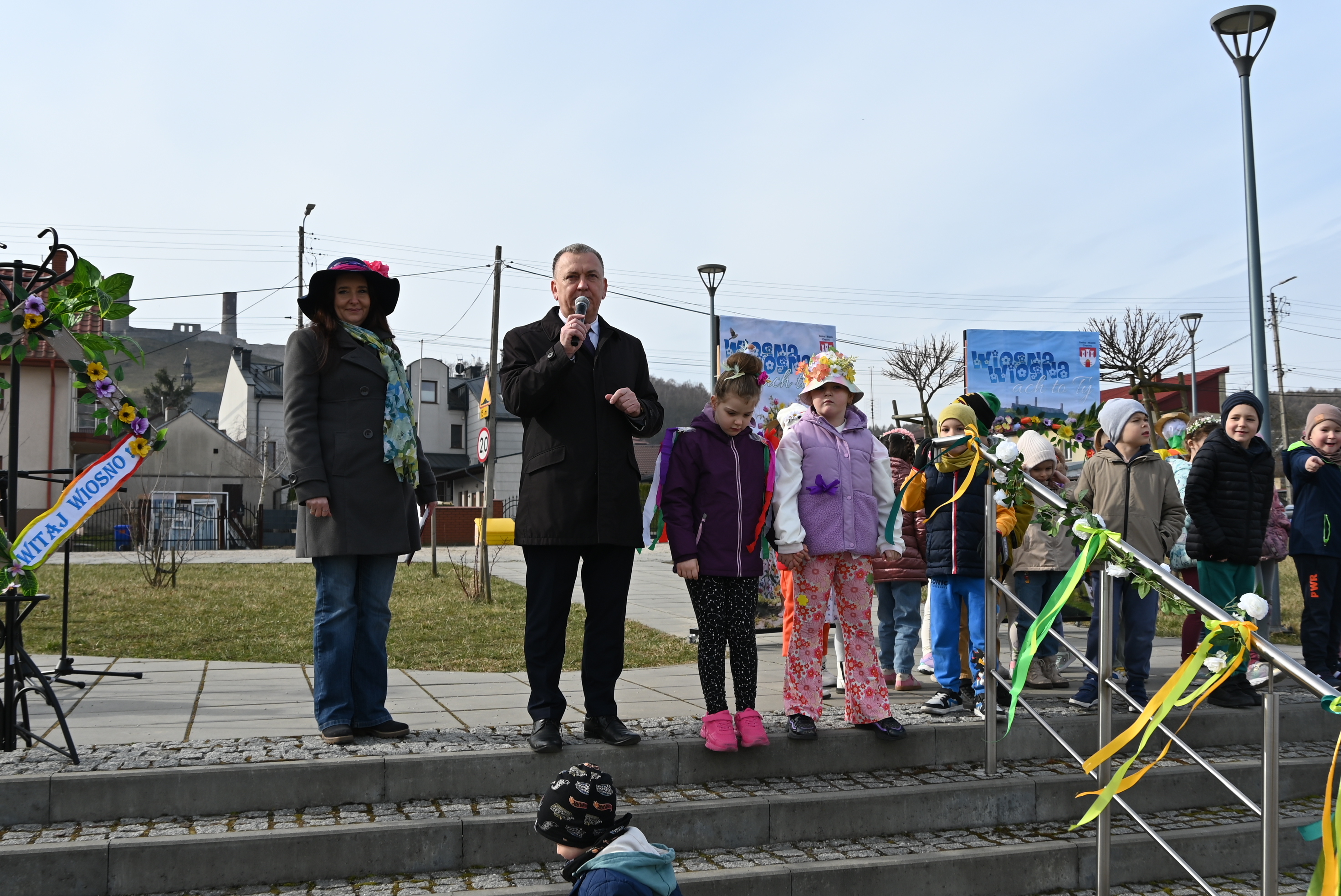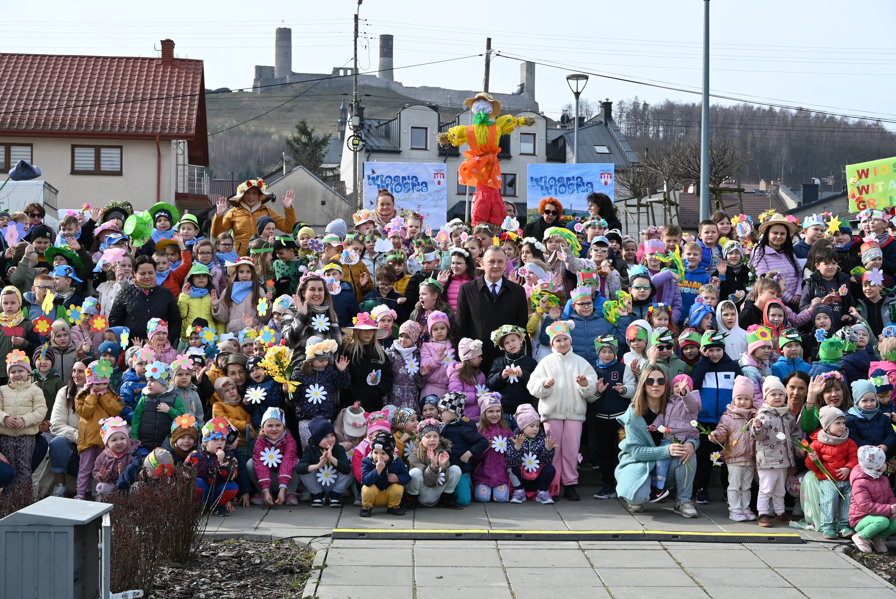Uczestników powitał burmistrz Gminy i Miasta Chęciny Robert Jaworski, który zwrócił się do dzieci ciepłymi słowami. - Drodzy Uczniowie i Przedszkolaki, witam Was bardzo serdecznie w ten wyjątkowy dzień. Cieszę się, że możemy razem świętować nadejście wiosny - pory roku pełnej słońca, radości i nowej energii. Wasze uśmiechy i entuzjazm pokazują, że tradycje można pięknie łączyć ze wspólną zabawą. Życzę Wam wielu powodów do radości i wspaniałej, słonecznej wiosny.