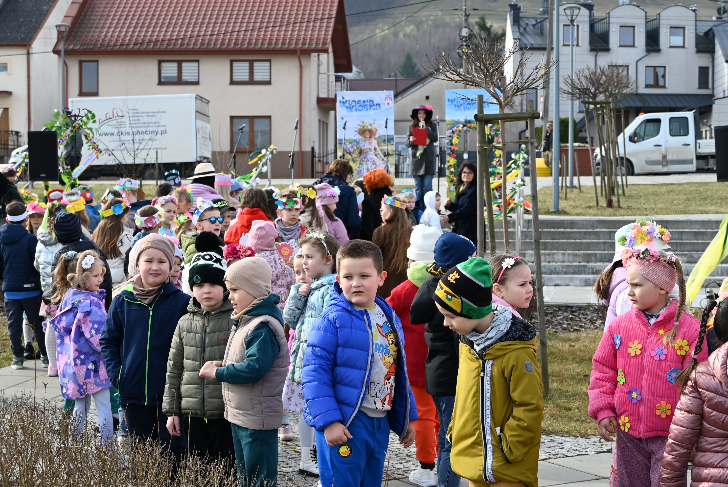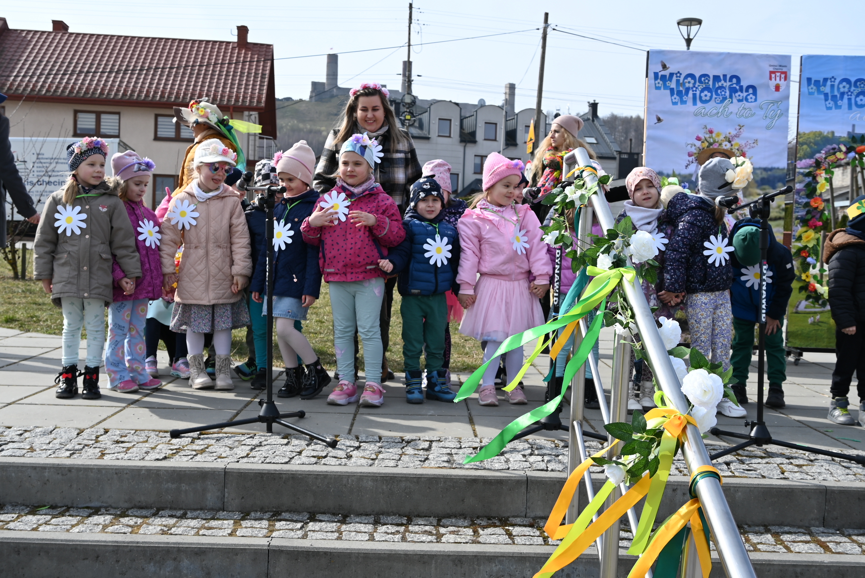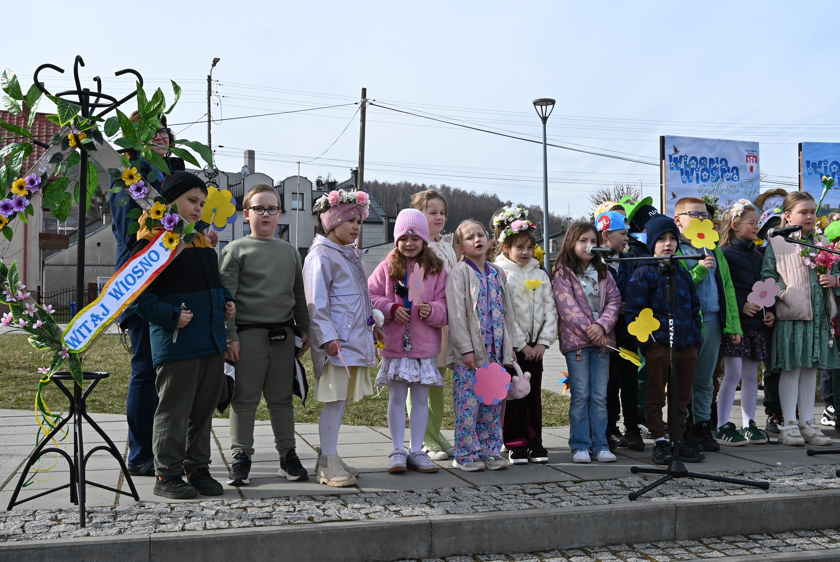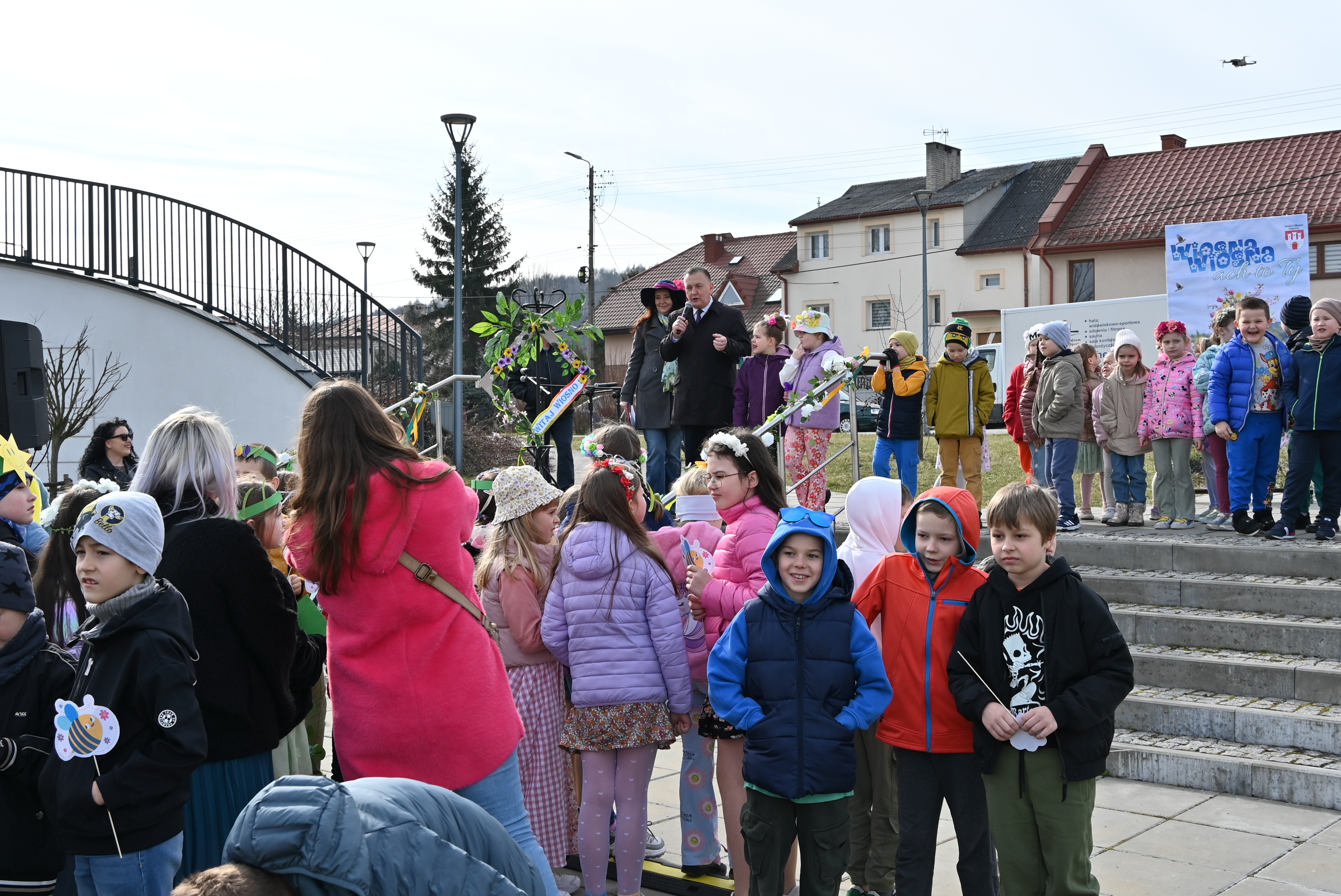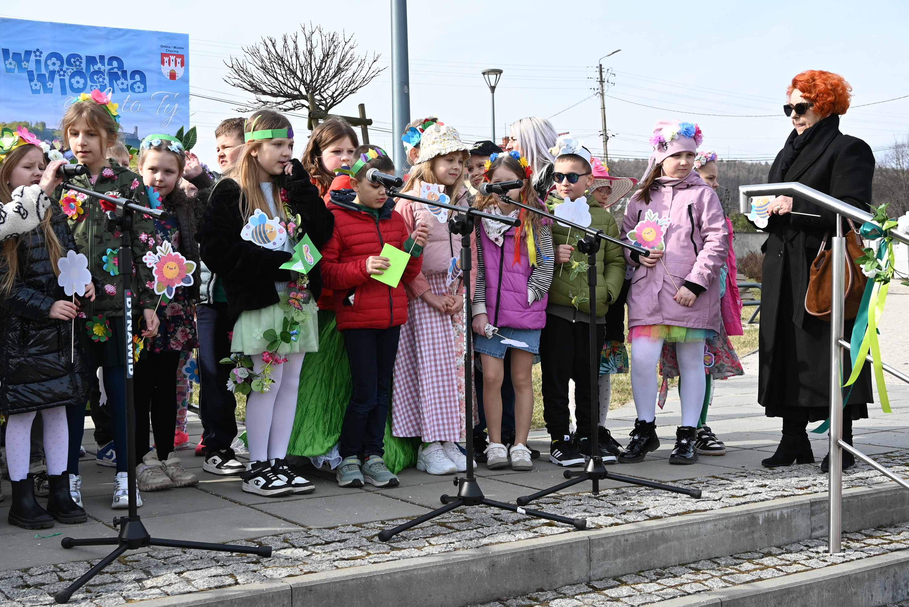 Uczestników powitał burmistrz Gminy i Miasta Chęciny Robert Jaworski, który zwrócił się do dzieci ciepłymi słowami. - Drodzy Uczniowie i Przedszkolaki, witam Was bardzo serdecznie w ten wyjątkowy dzień. Cieszę się, że możemy razem świętować nadejście wiosny - pory roku pełnej słońca, radości i nowej energii. Wasze uśmiechy i entuzjazm pokazują, że tradycje można pięknie łączyć ze wspólną zabawą. Życzę Wam wielu powodów do radości i wspaniałej, słonecznej wiosny.