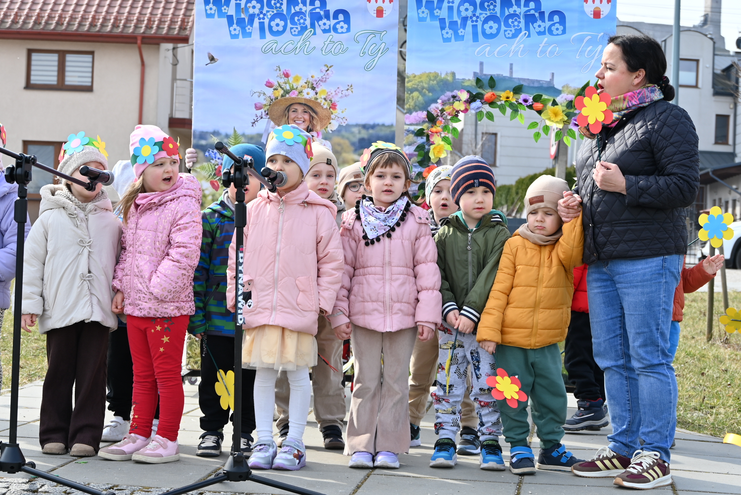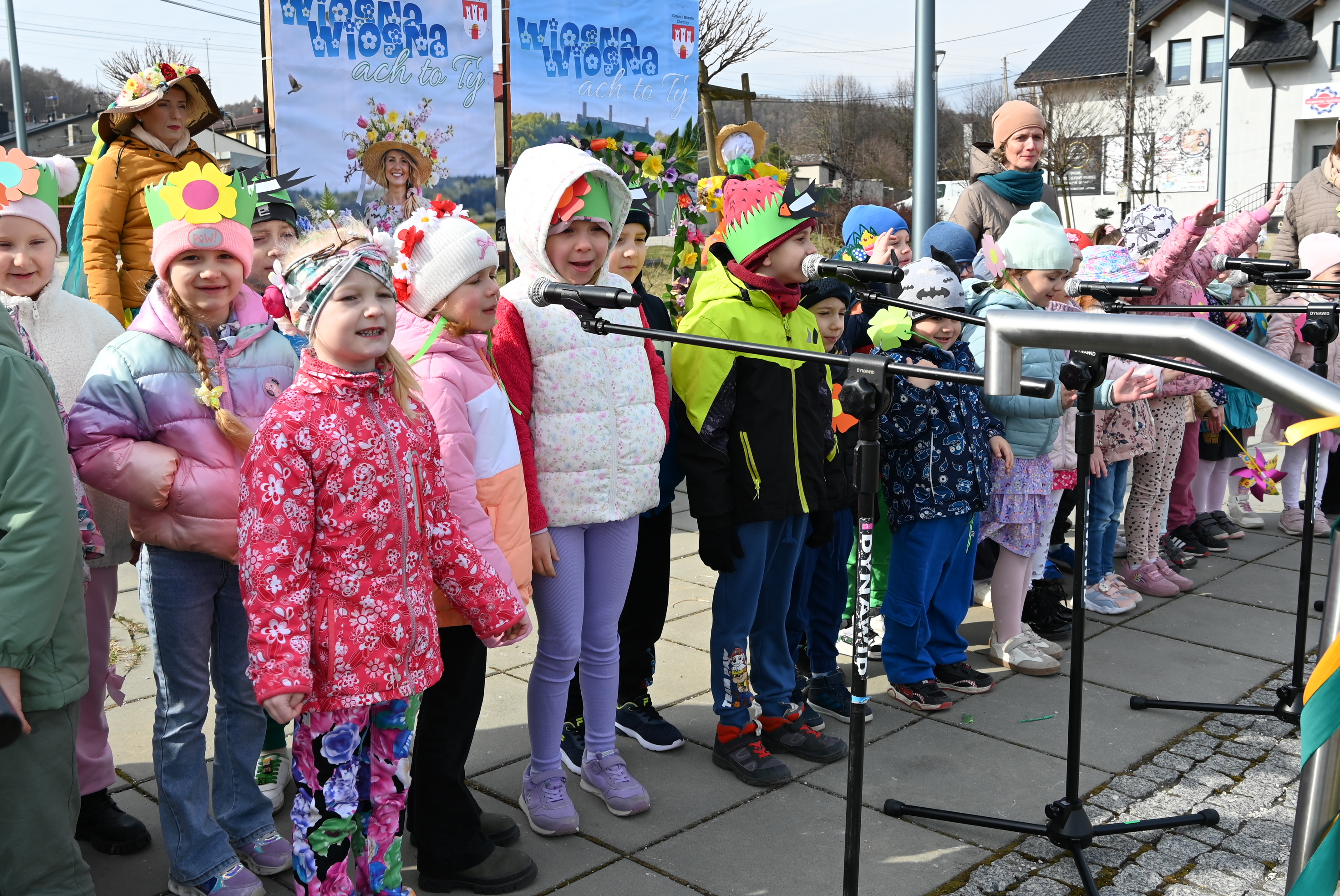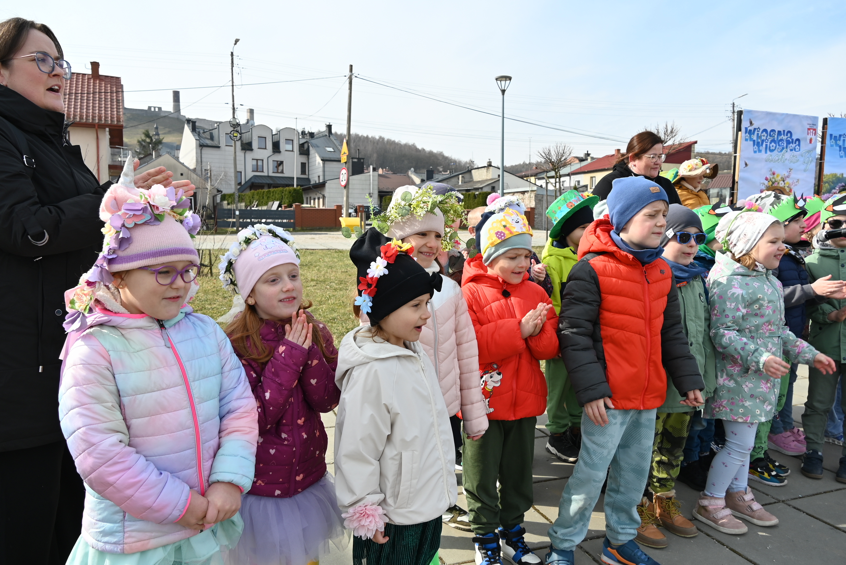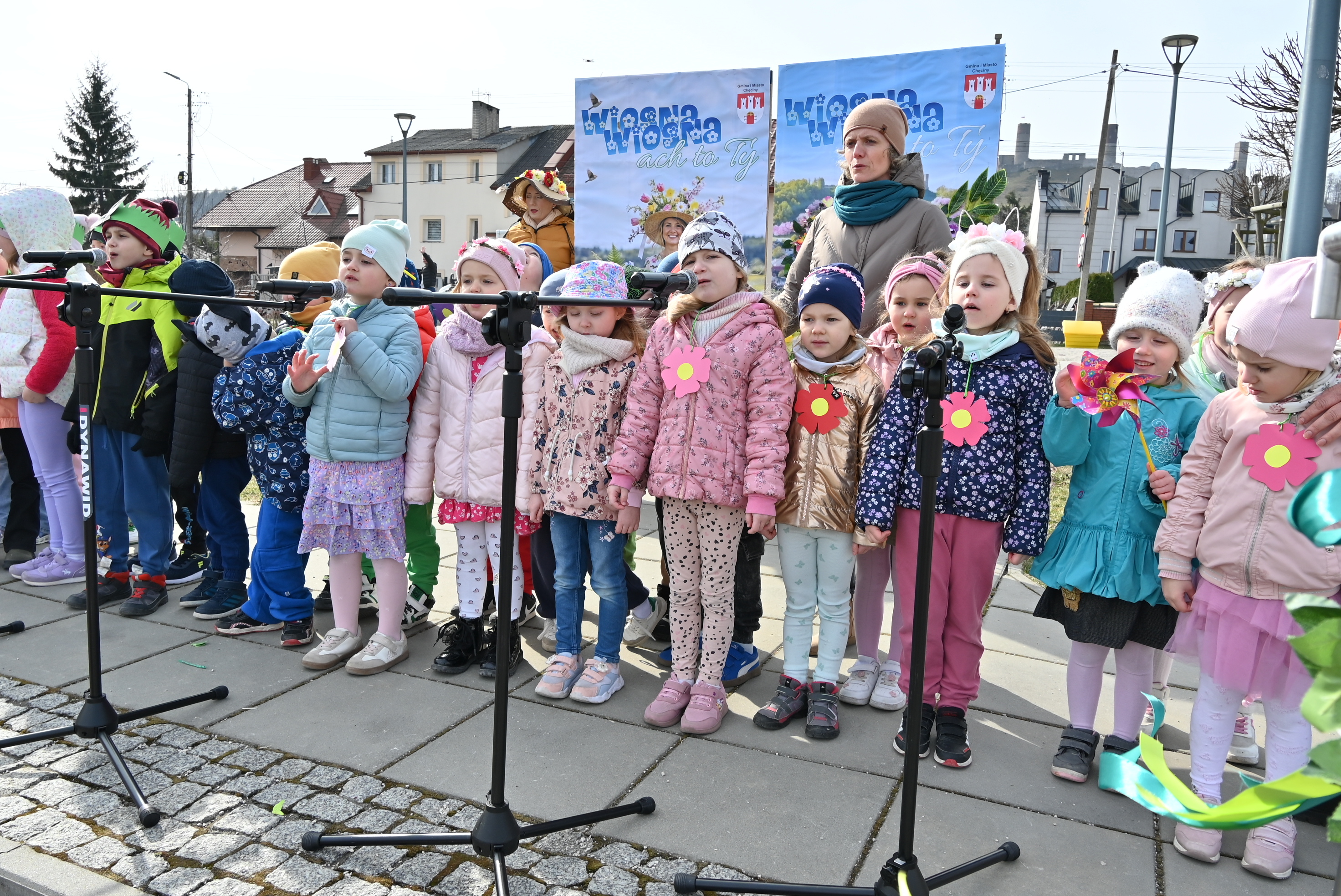Ważnym punktem wydarzenia były występy wokalne najmłodszych. Dzieci zaprezentowały piosenki o tematyce wiosennej, wprowadzając wszystkich w pogodny, pełen energii nastrój. Wśród przedszkolnych grup wystąpiły: Niedźwiadki, Liski i Sówki z piosenką „Witaj Wiosno ukochana”, Zajączki i Wróbelki zaśpiewały „Hop, hop idzie Wiosna”, Wiewiórki i Jeżyki zaprezentowały się w utworze „Maszeruje wiosna”, a Sikorki w „Wiosna tuż, tuż”. Do powitania wiosny dołączyli również najmłodsi uczestnicy – dzieci z grupy „Serduszka” ze Żłobka Samorządowego w Chęcinach.