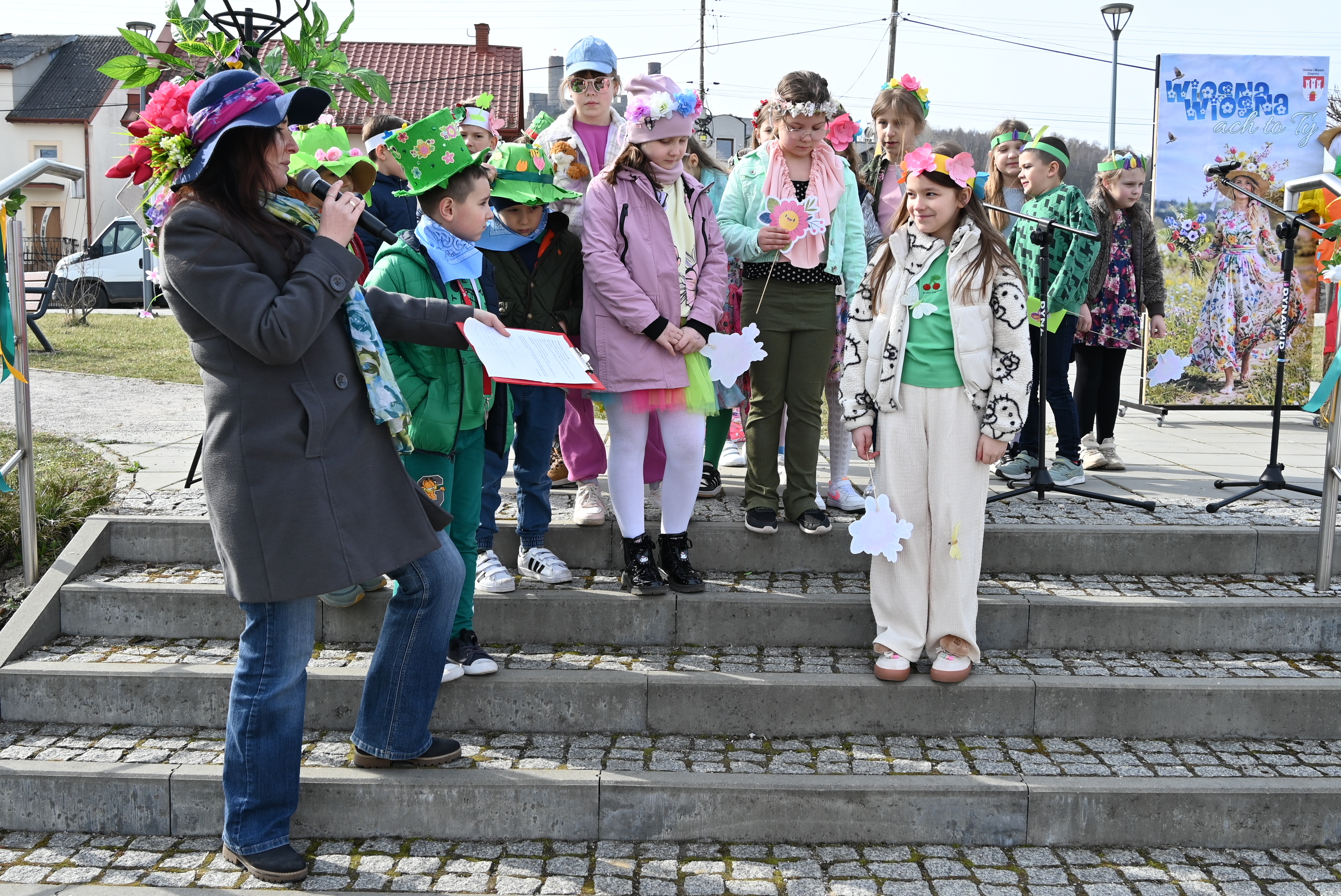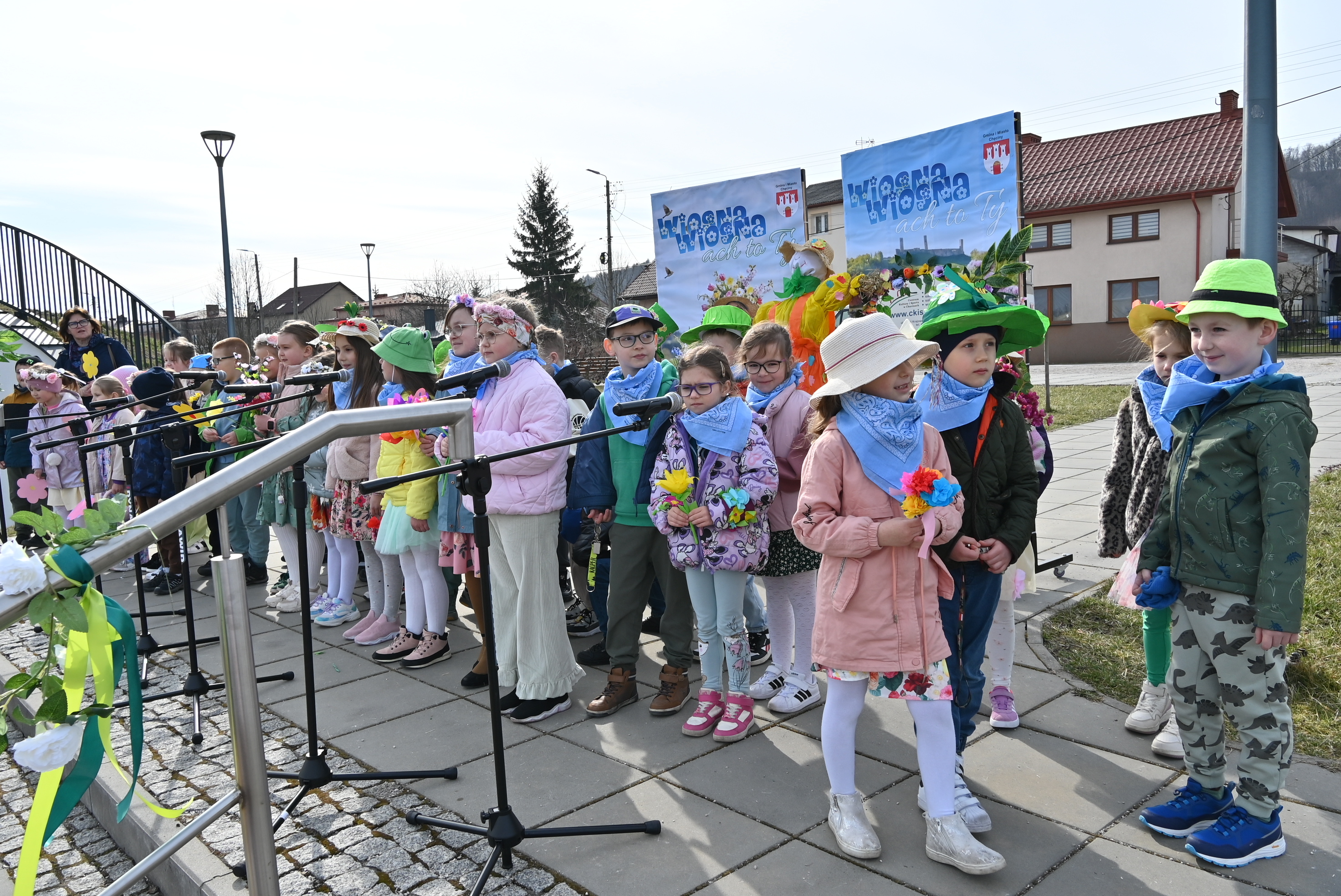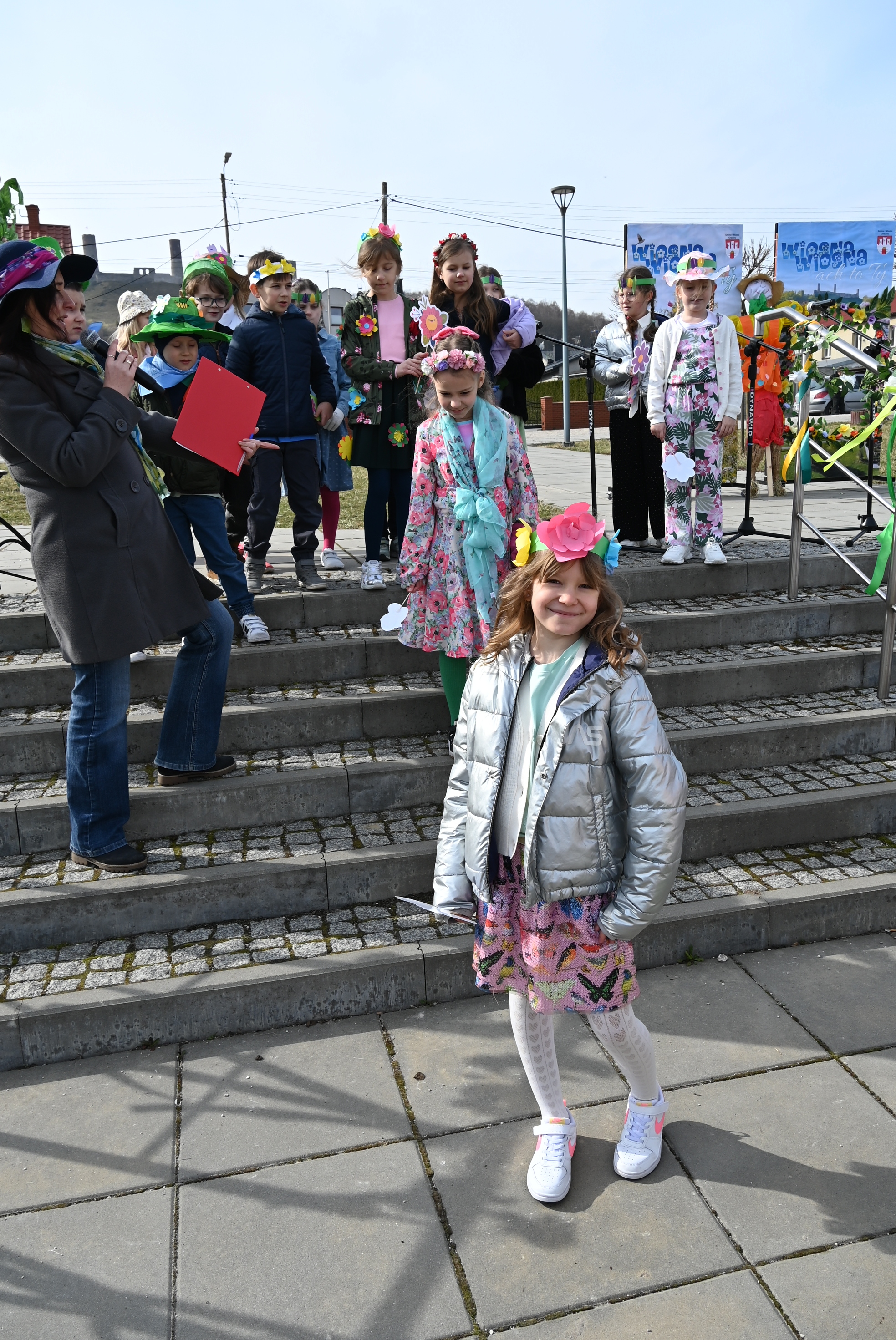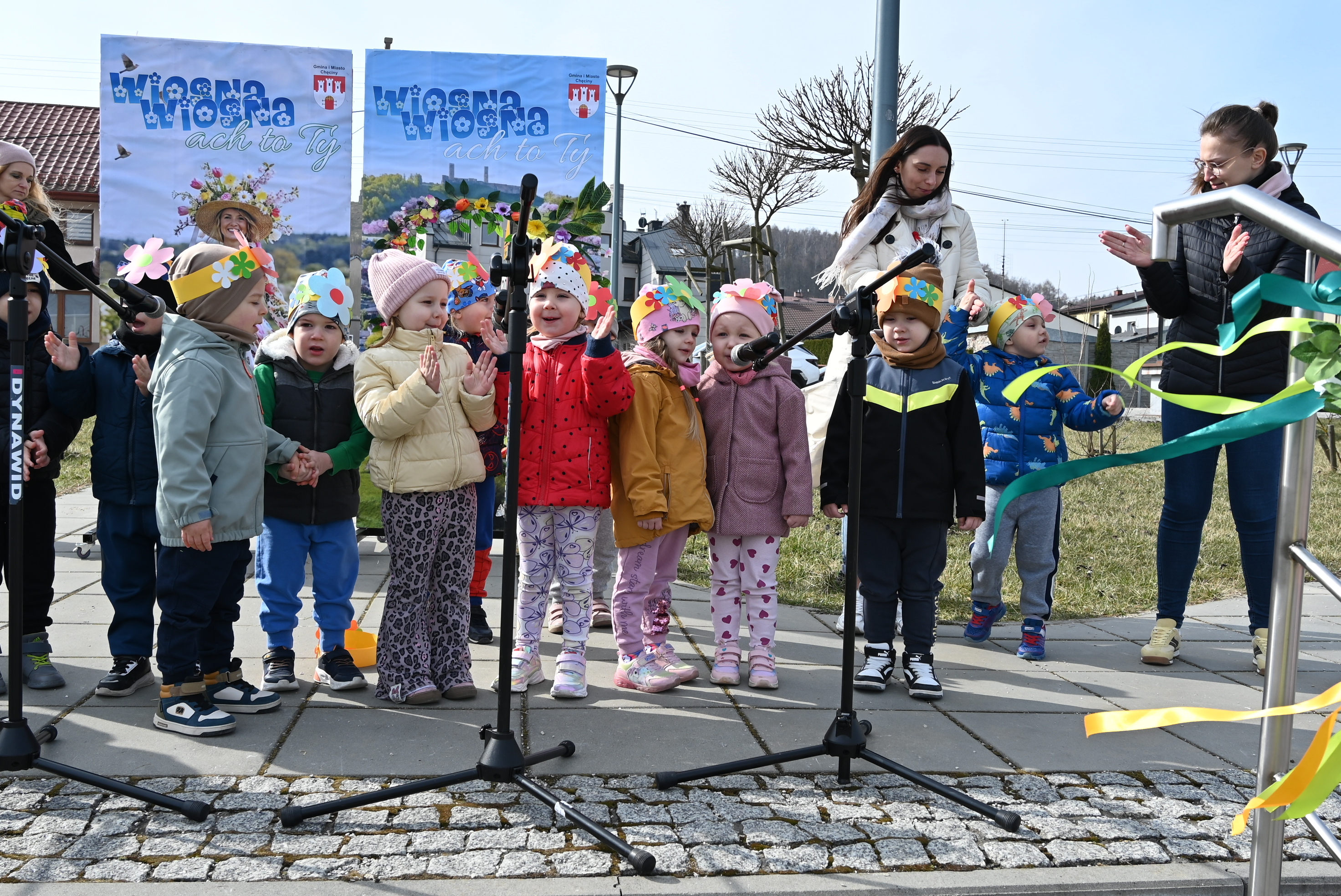 Ważnym punktem wydarzenia były występy wokalne najmłodszych. Dzieci zaprezentowały piosenki o tematyce wiosennej, wprowadzając wszystkich w pogodny, pełen energii nastrój. Wśród przedszkolnych grup wystąpiły: Niedźwiadki, Liski i Sówki z piosenką „Witaj Wiosno ukochana”, Zajączki i Wróbelki zaśpiewały „Hop, hop idzie Wiosna”, Wiewiórki i Jeżyki zaprezentowały się w utworze „Maszeruje wiosna”, a Sikorki w „Wiosna tuż, tuż”. Do powitania wiosny dołączyli również najmłodsi uczestnicy – dzieci z grupy „Serduszka” ze Żłobka Samorządowego w Chęcinach.