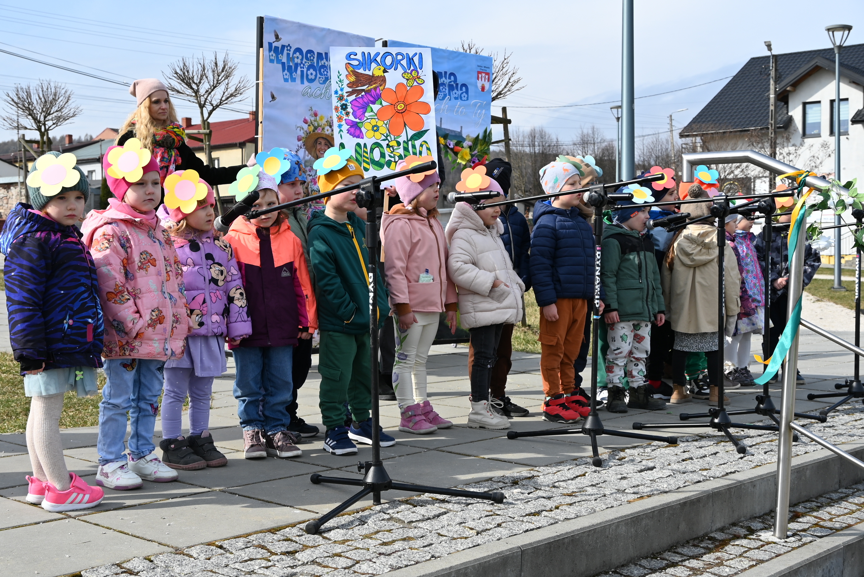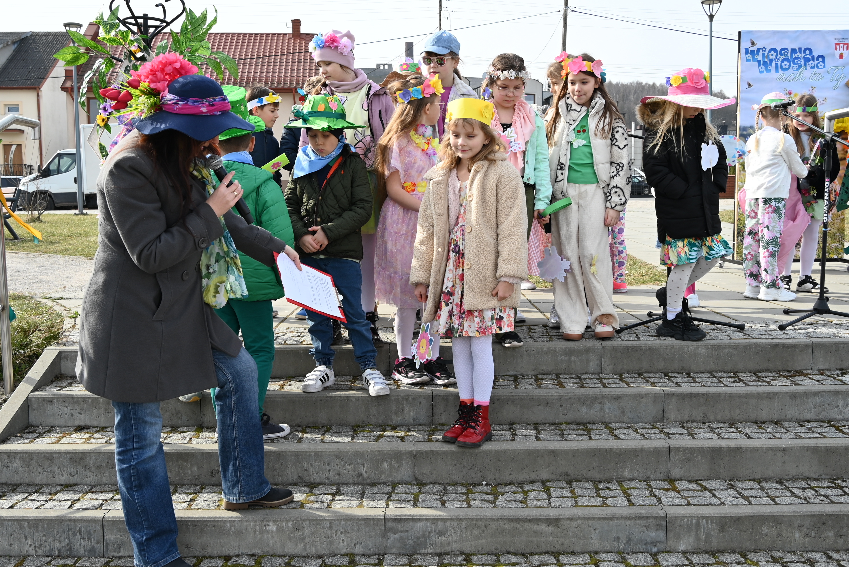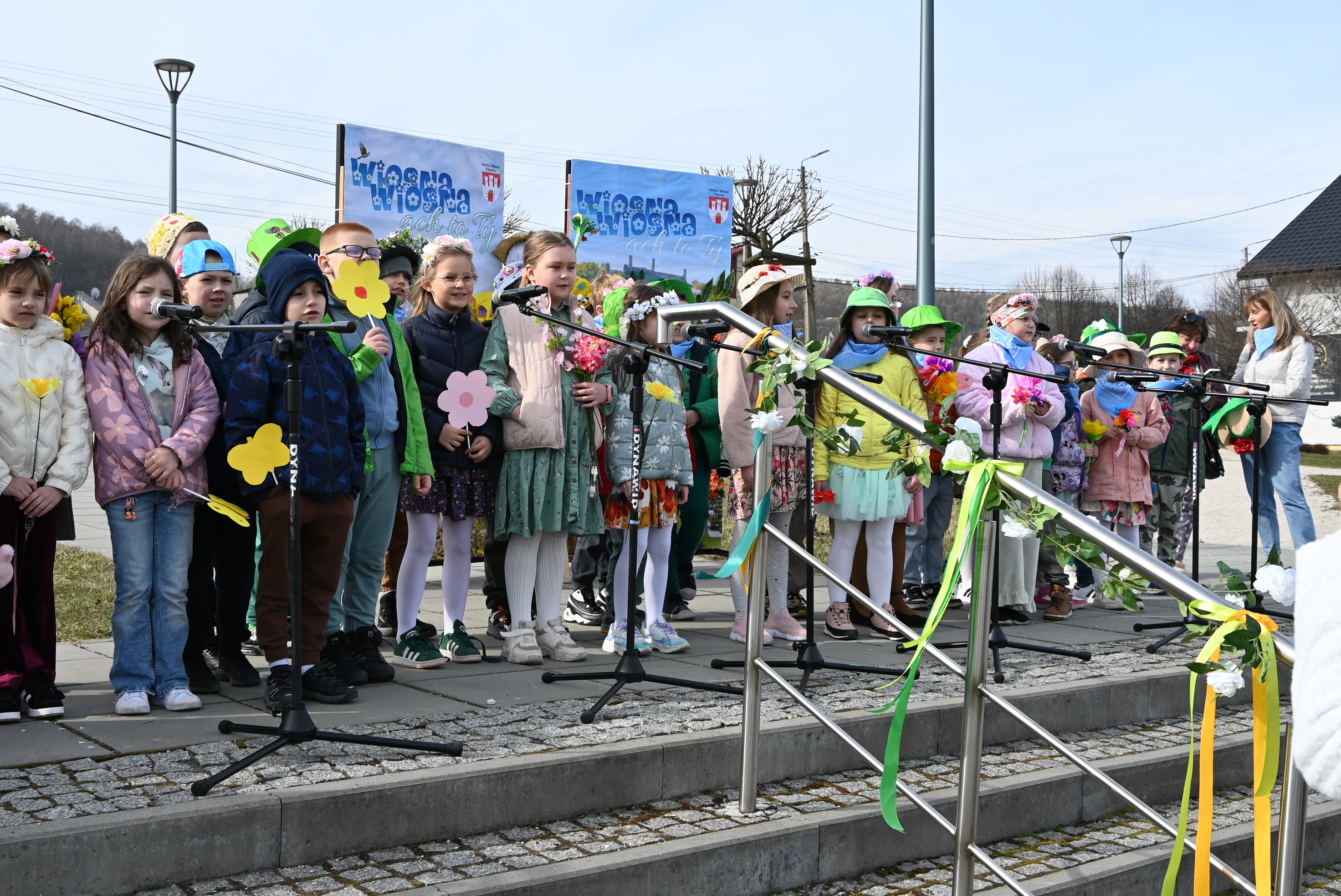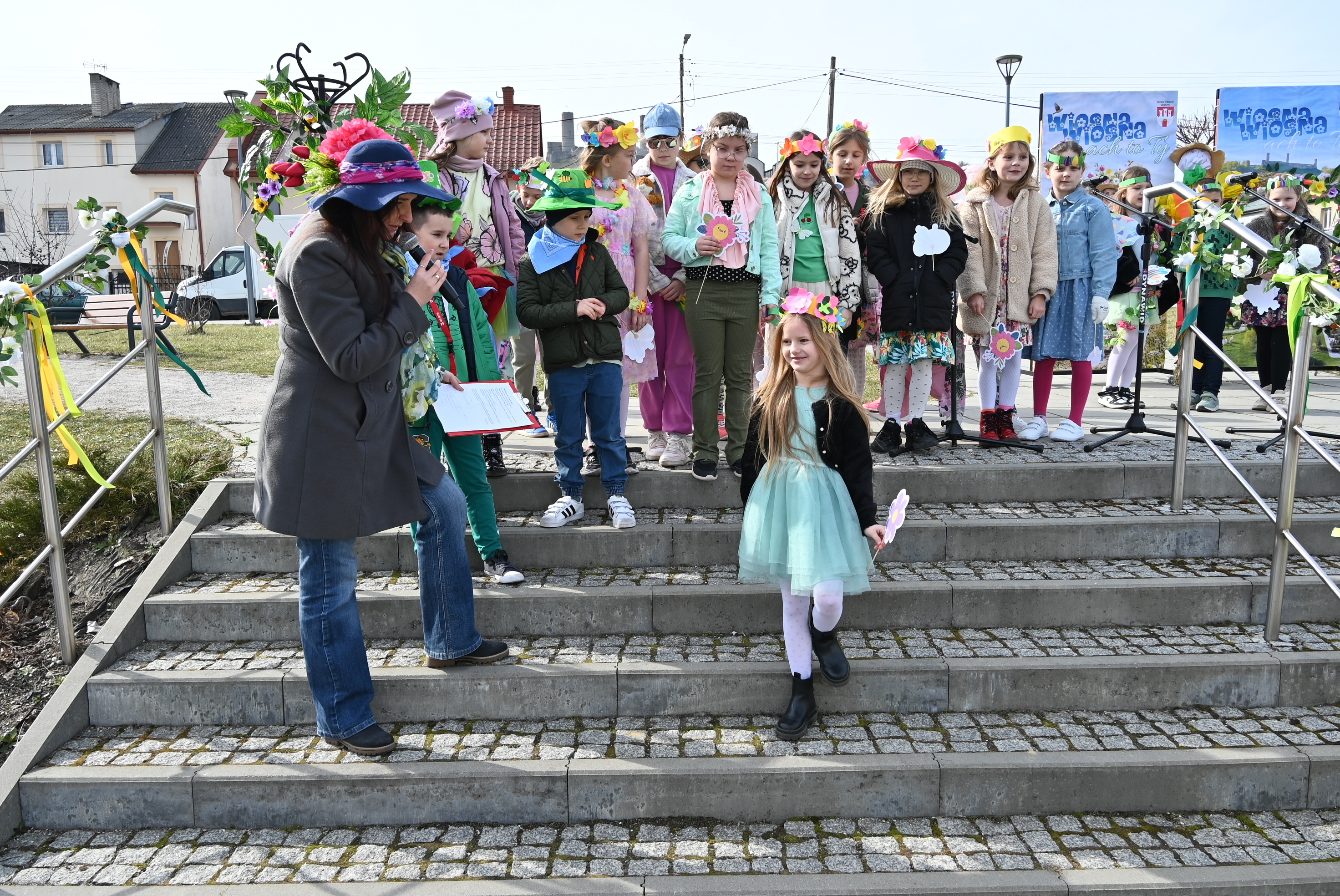 Ważnym punktem wydarzenia były występy wokalne najmłodszych. Dzieci zaprezentowały piosenki o tematyce wiosennej, wprowadzając wszystkich w pogodny, pełen energii nastrój. Wśród przedszkolnych grup wystąpiły: Niedźwiadki, Liski i Sówki z piosenką „Witaj Wiosno ukochana”, Zajączki i Wróbelki zaśpiewały „Hop, hop idzie Wiosna”, Wiewiórki i Jeżyki zaprezentowały się w utworze „Maszeruje wiosna”, a Sikorki w „Wiosna tuż, tuż”. Do powitania wiosny dołączyli również najmłodsi uczestnicy – dzieci z grupy „Serduszka” ze Żłobka Samorządowego w Chęcinach.
