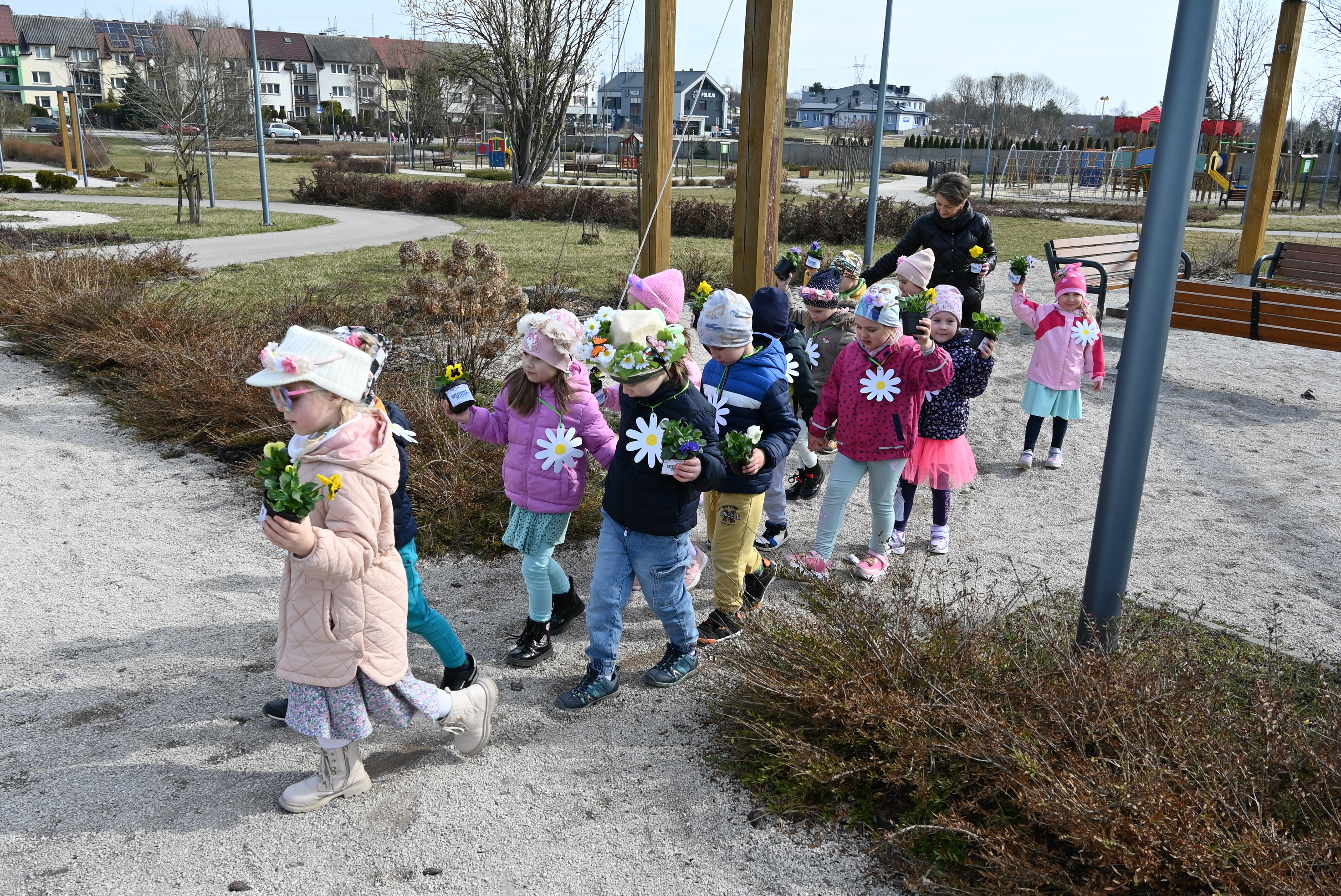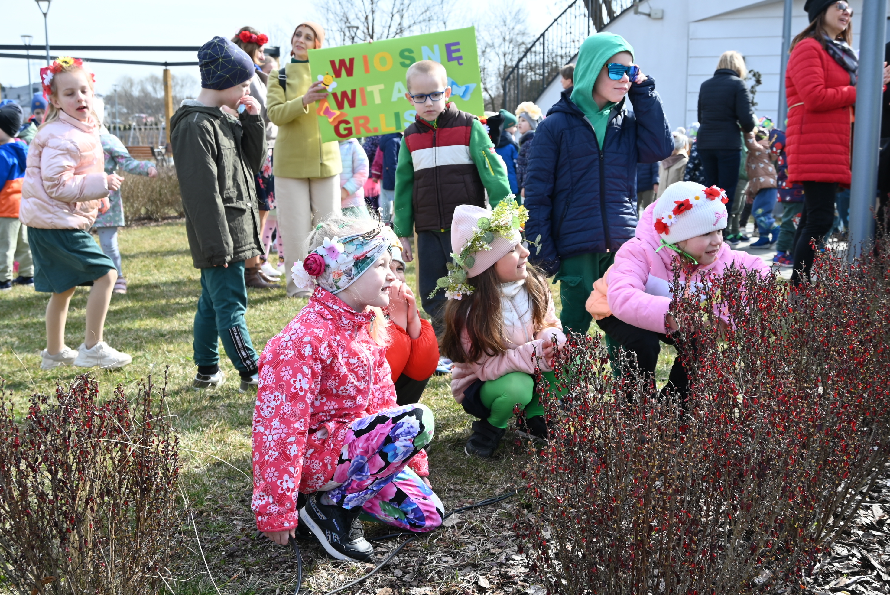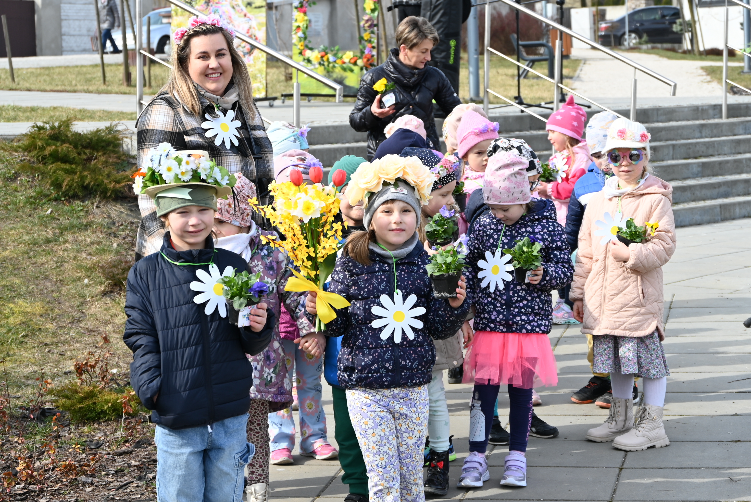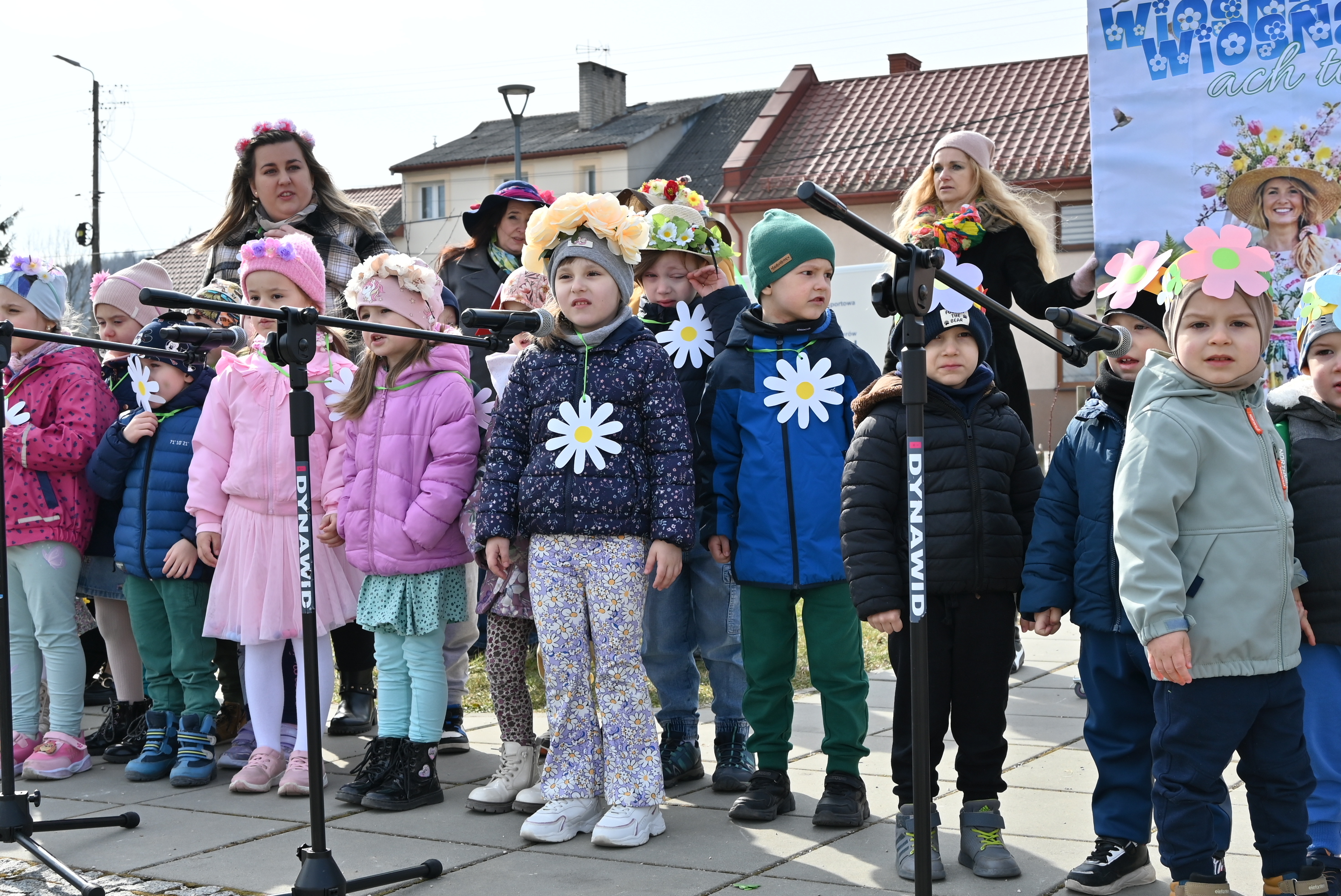 Ważnym punktem wydarzenia były występy wokalne najmłodszych. Dzieci zaprezentowały piosenki o tematyce wiosennej, wprowadzając wszystkich w pogodny, pełen energii nastrój. Wśród przedszkolnych grup wystąpiły: Niedźwiadki, Liski i Sówki z piosenką „Witaj Wiosno ukochana”, Zajączki i Wróbelki zaśpiewały „Hop, hop idzie Wiosna”, Wiewiórki i Jeżyki zaprezentowały się w utworze „Maszeruje wiosna”, a Sikorki w „Wiosna tuż, tuż”. Do powitania wiosny dołączyli również najmłodsi uczestnicy – dzieci z grupy „Serduszka” ze Żłobka Samorządowego w Chęcinach.