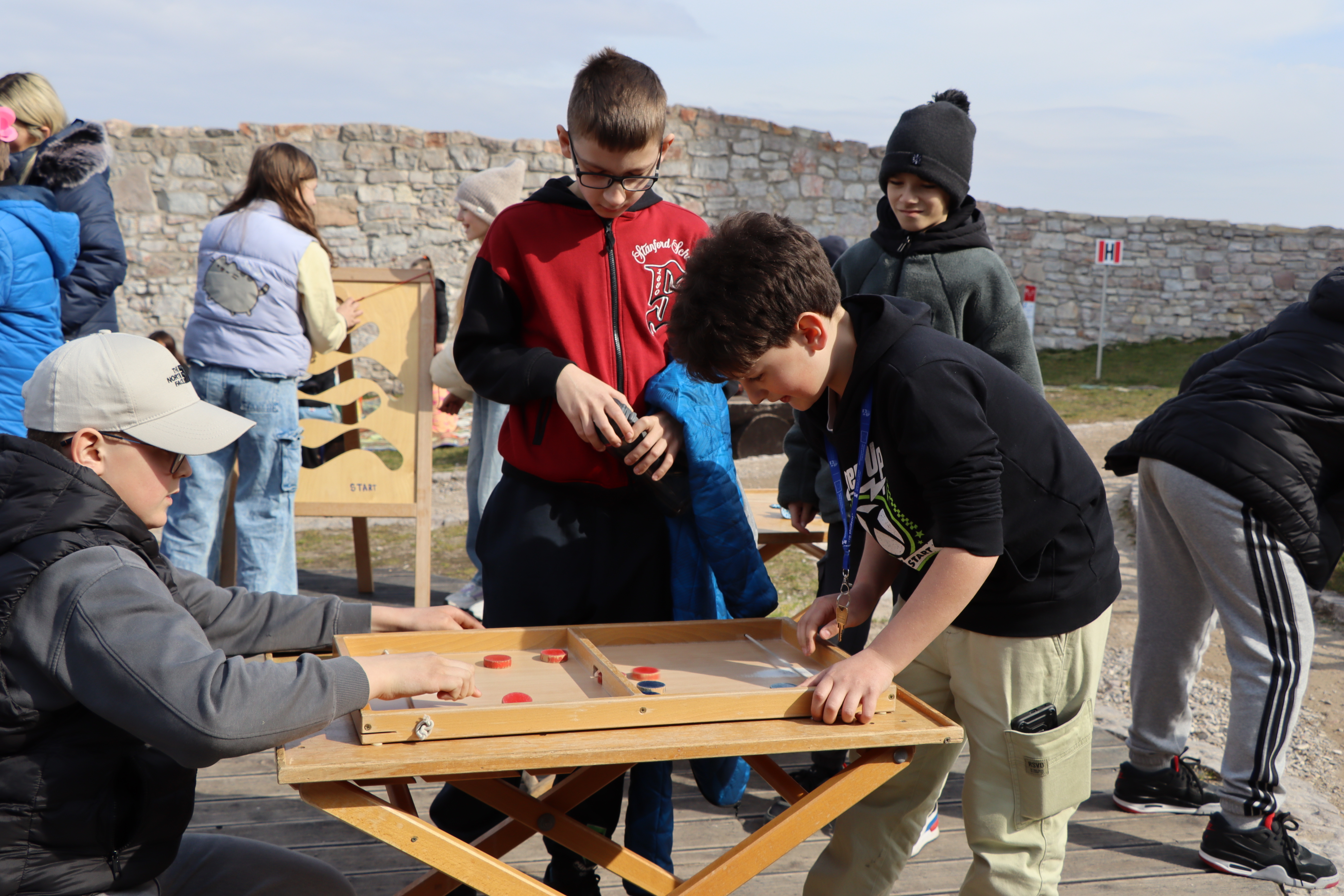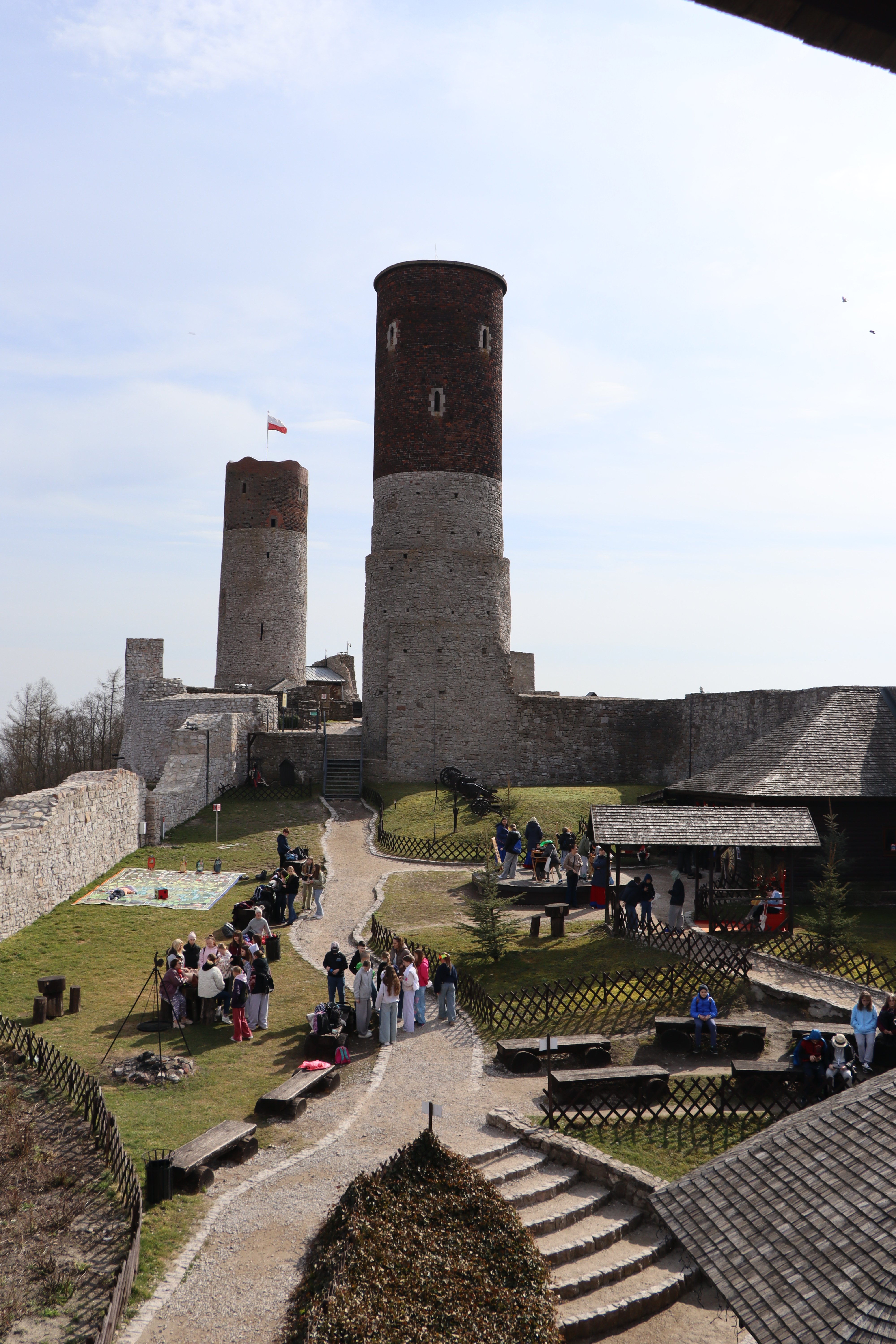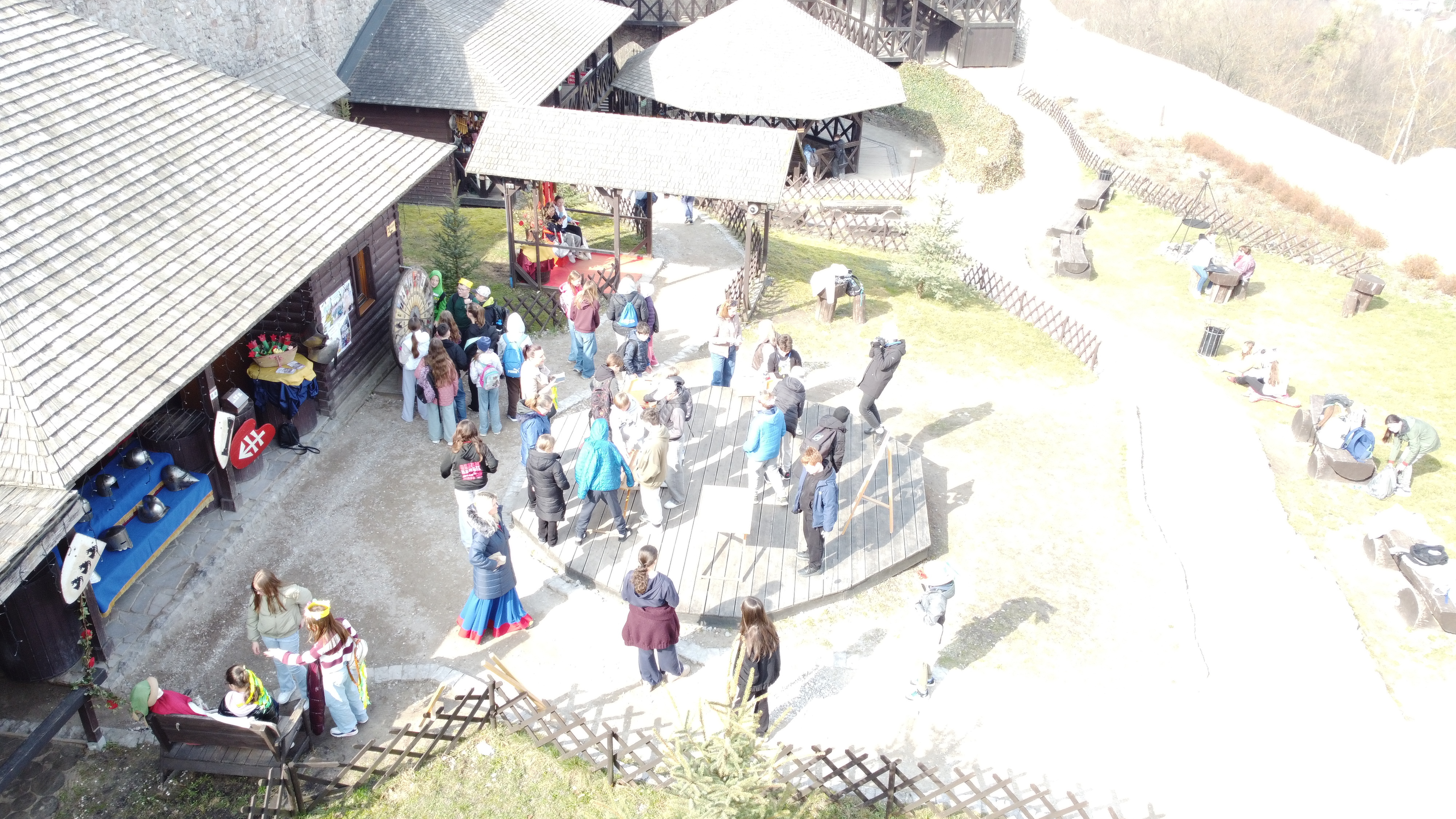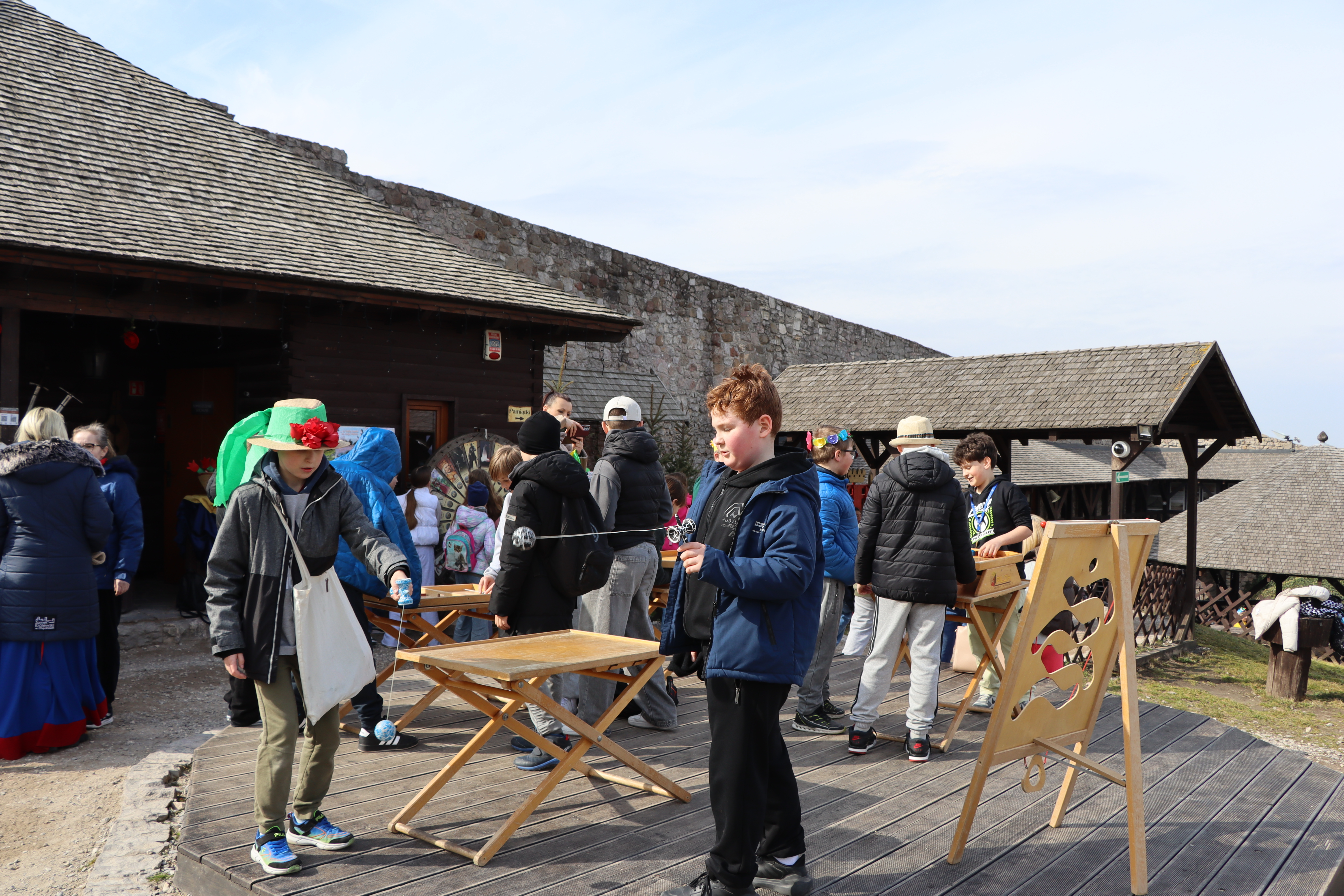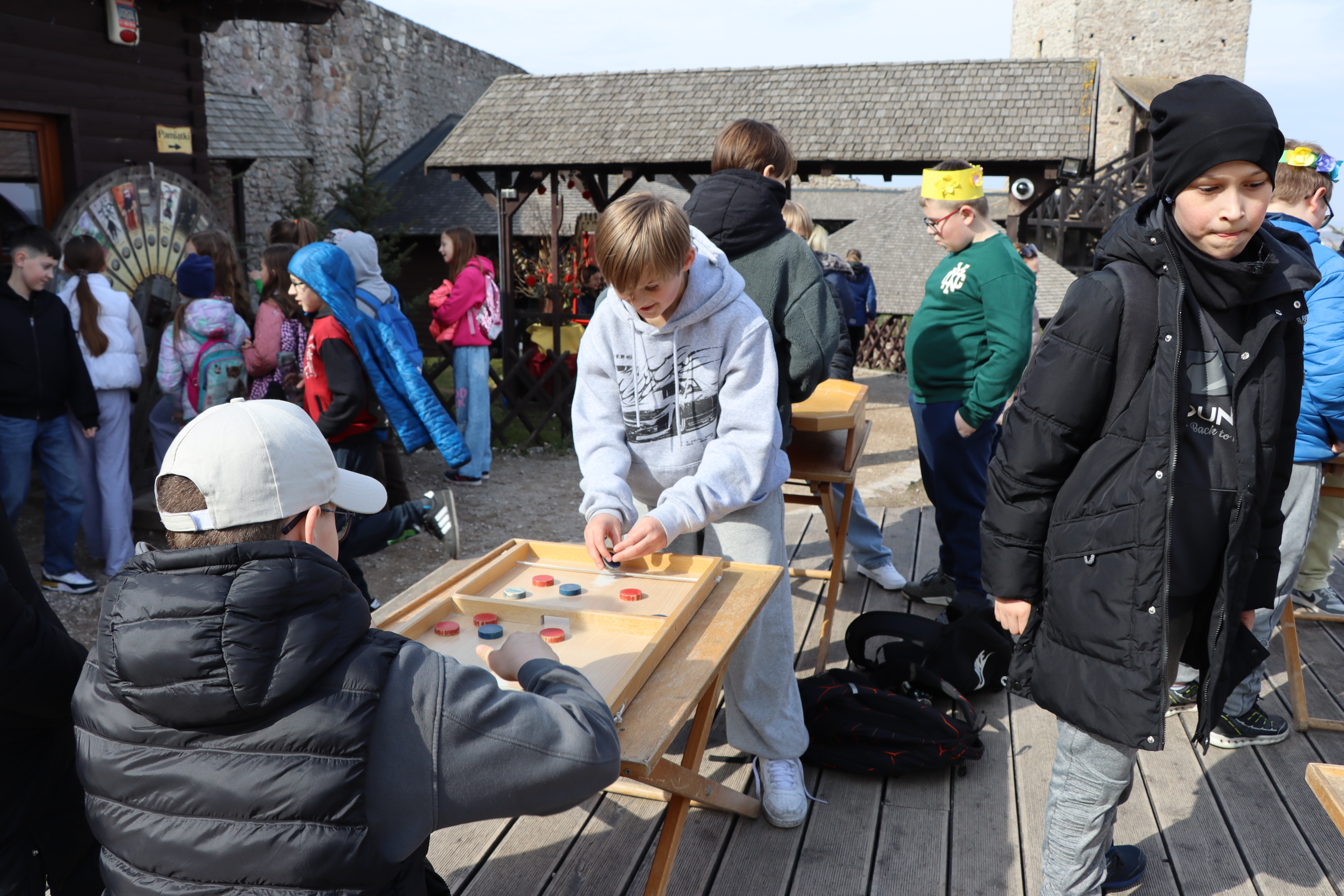 Po zakończeniu części artystycznej do parku dotarły kolejne cztery klasy, które przemaszerowały ze szkoły, by dołączyć do wspólnego świętowania. Następnie wyruszyli barwnym korowodem na Zamek Królewski w Chęcinach. Na zamkowym dziedzińcu dzieci mogły wziąć udział w dawnych grach i zabawach, poznając tradycyjne formy spędzania czasu i ucząc się poprzez aktywność oraz wspólną rozrywkę.