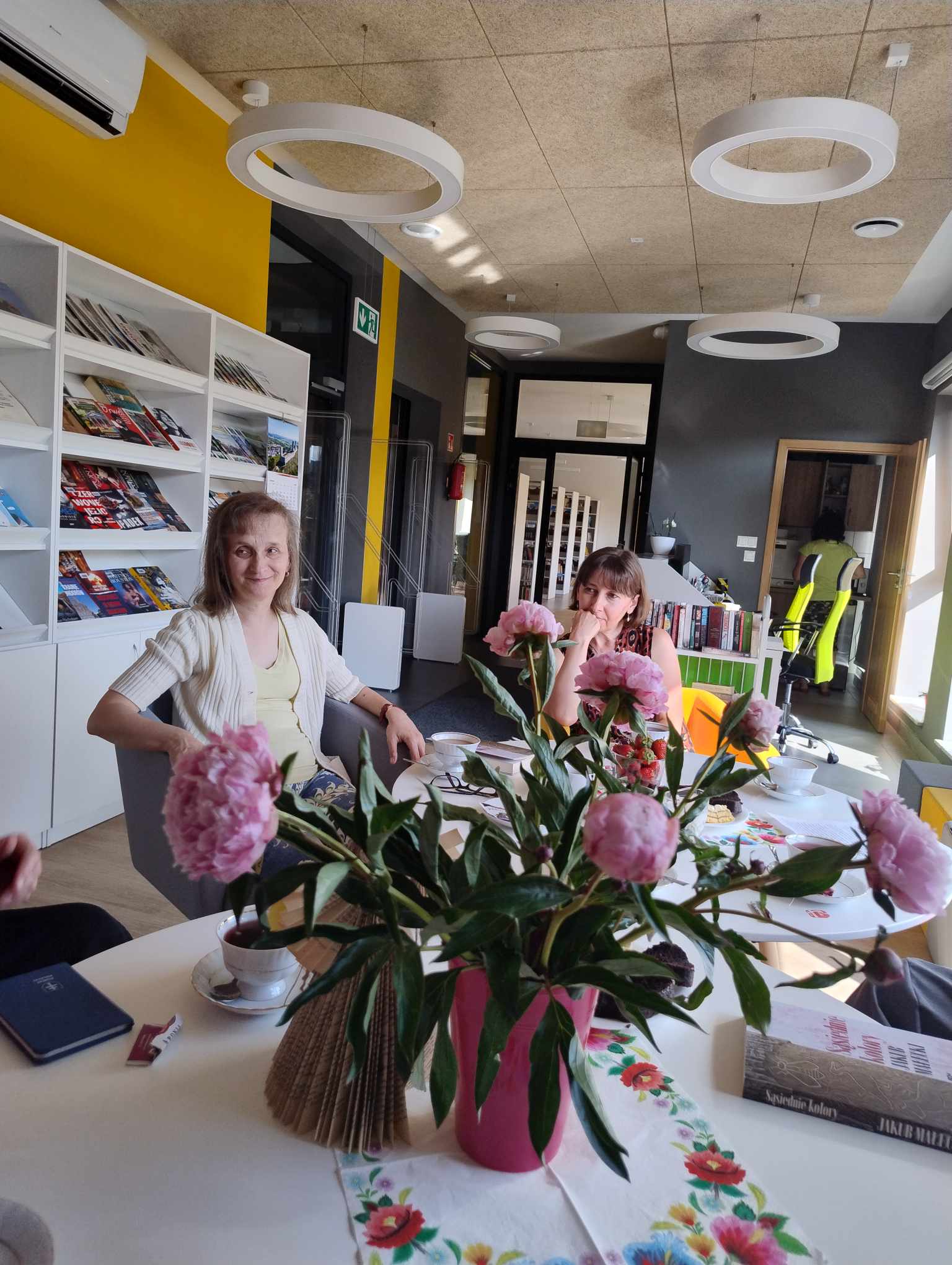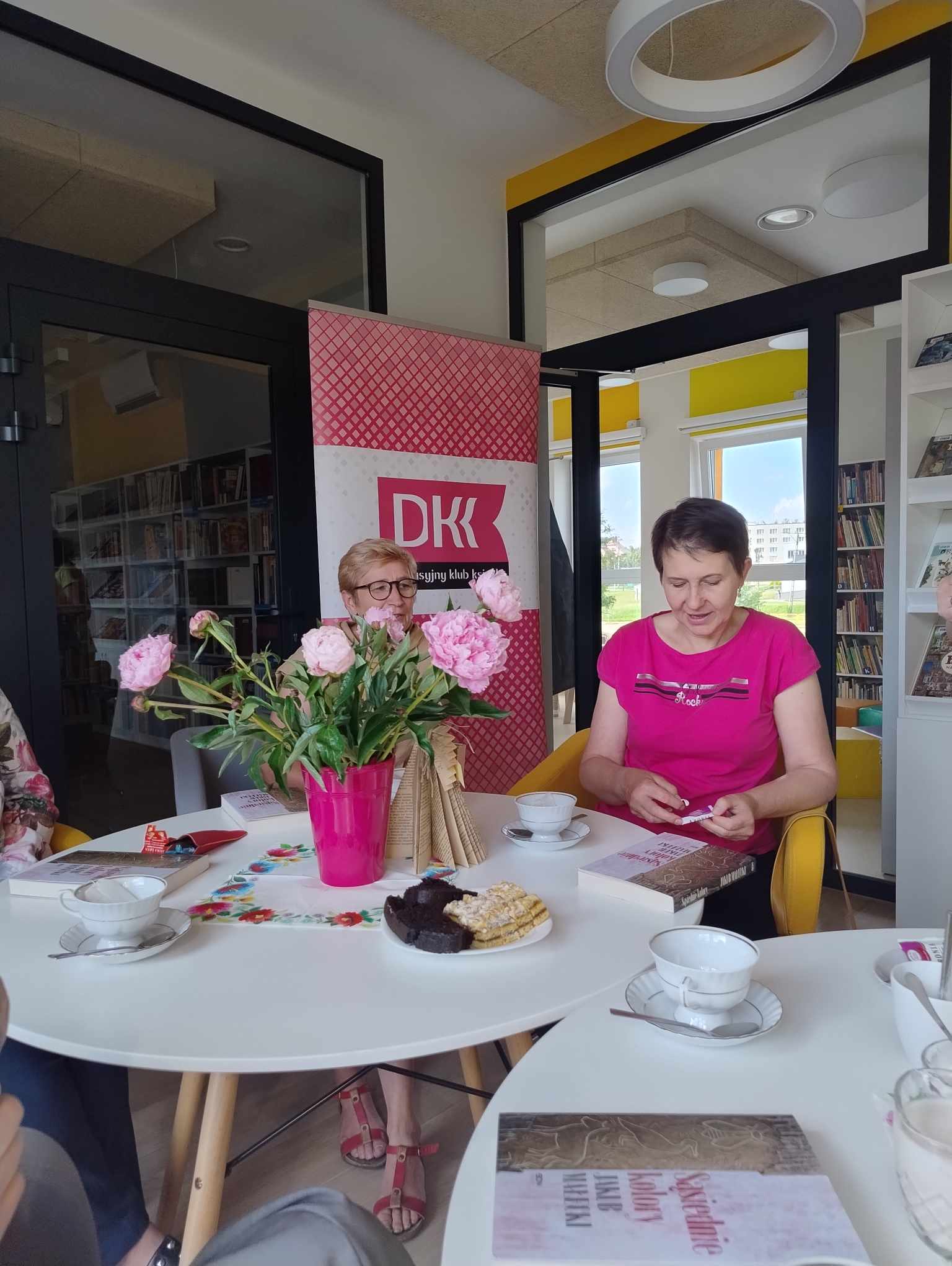 Piątego czerwca 2024 roku odbyło się spotkanie Dyskusyjnego Klubu Książki. Klubowiczki rozmawiały o powieści Jakuba Małeckiego pt. „Sąsiednie kolory” przy stole ozdobionym cudownie pachnącymi piwoniami. Czas spotkania po raz pierwszy odmierzał niesamowity zegar z napisem: „Czas na książkę i dobrą kawę” – prezent dla chęcińskiego klubu od Wojewódzkiej Biblioteki Publicznej w Kielcach.