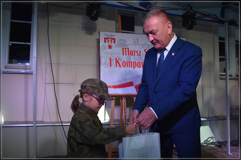 Wieloletnią tradycją już jest, że włodarz Gminy, chcąc podkreślić rolę pamięci historycznej przekazywanej z pokolenia na pokolenie, przyznaje też upominki dla najstarszego i najmłodszego uczestnika Marszu Szlakiem I Kompanii Kadrowej. Od wielu lat najstarszym uczestnikiem marszu jest Pan Jan Mencel. Natomiast najmłodszą uczestniczką w tym roku została Nicola Mrówka.