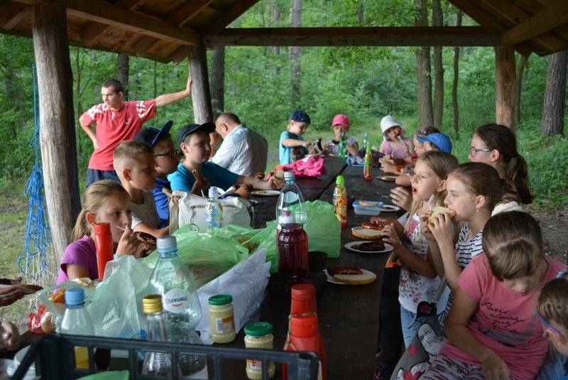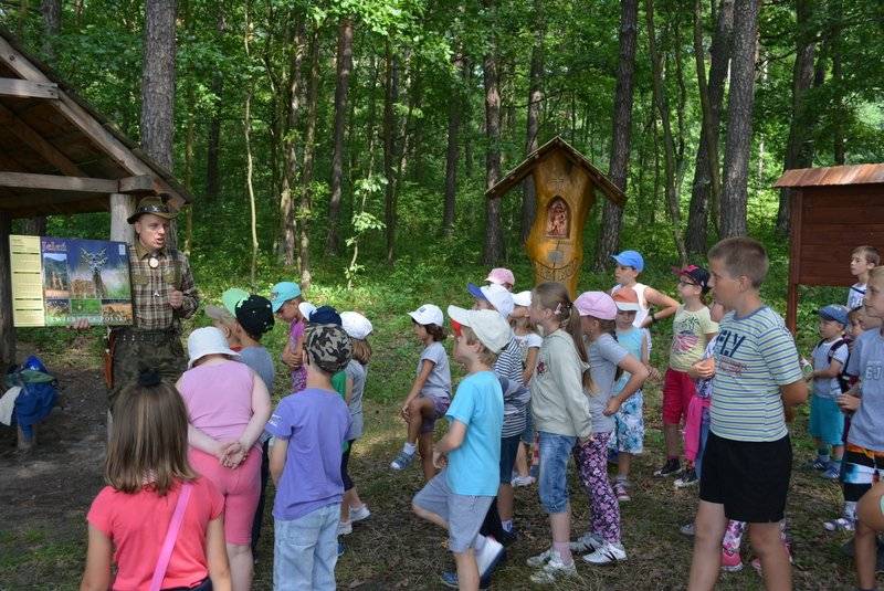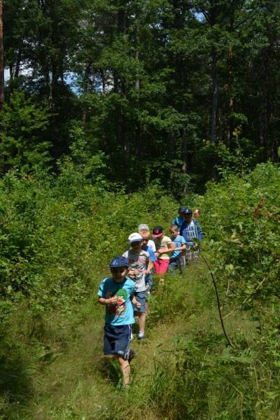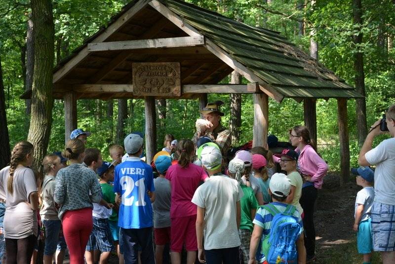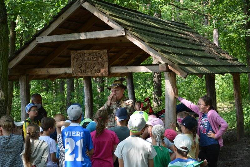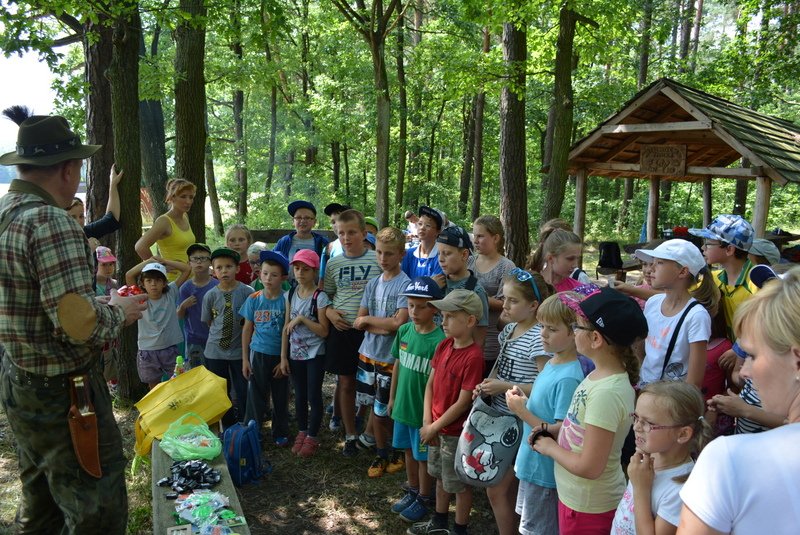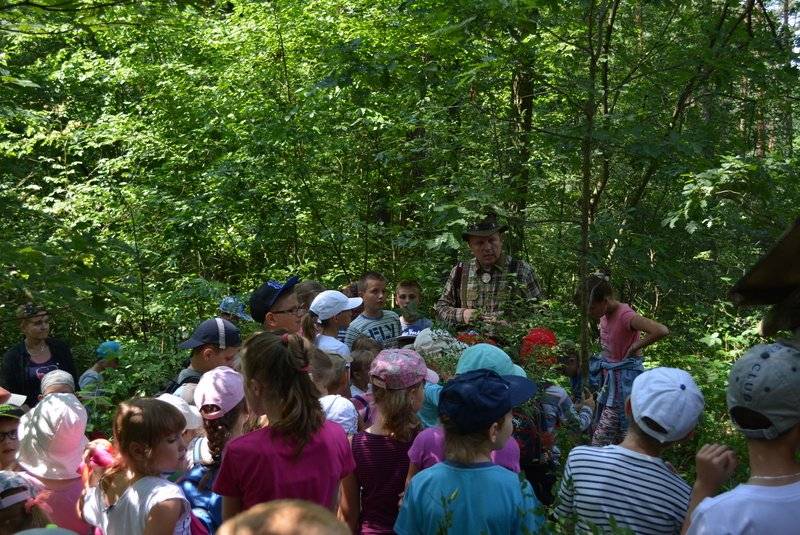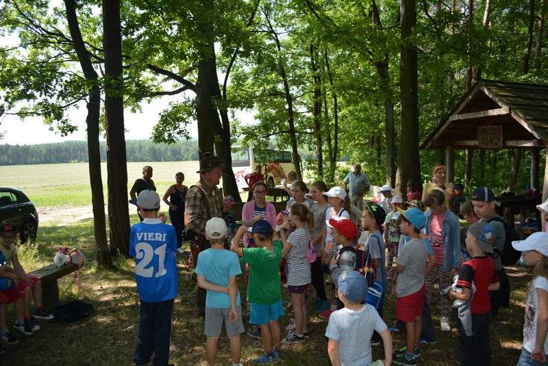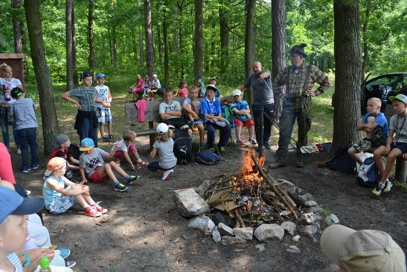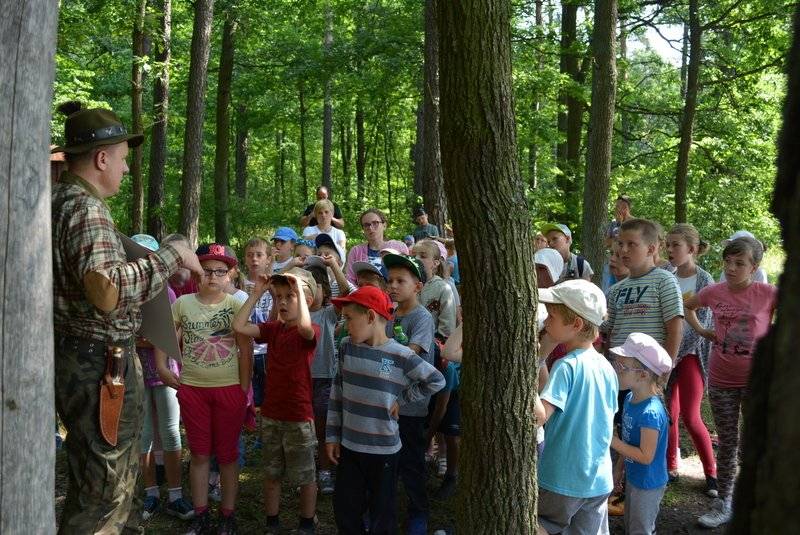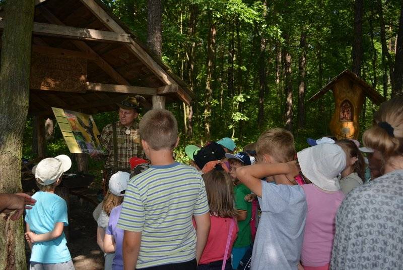 Po dotarciu na miejsce Pan Dariusz zapoznał uczestników wyjazdu z zasadami bezpiecznego zachowania w lesie jak również przedstawił zwierzęta zamieszkujące okoliczne lasy. Po ciekawym wykładzie wszyscy udali się na krótki spacer, aby obejrzeć miejsca gdzie zimą są dokarmiane zwierzęta przez myśliwych. Na koniec wycieczki było wspólne pieczenie kiełbasek oraz konkursy z nagrodami dla wszystkich uczestników wyjazdu.