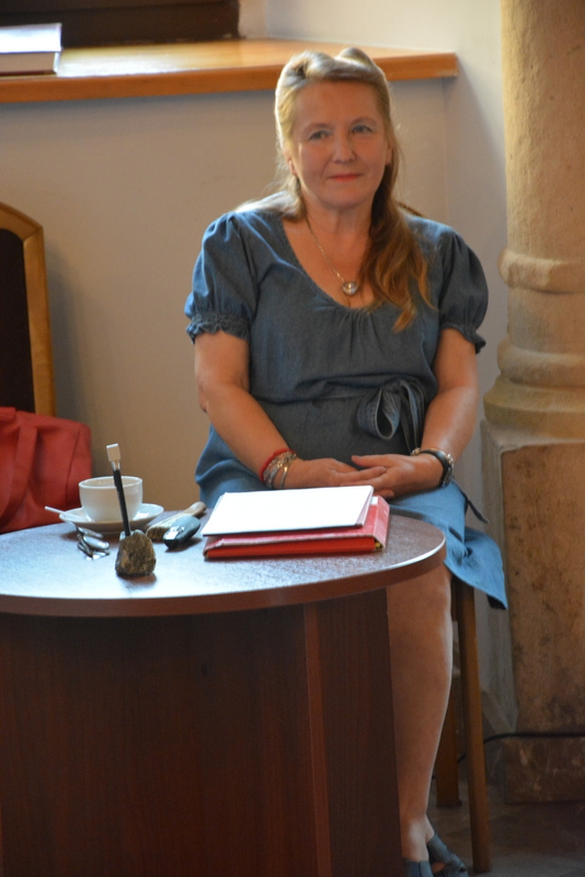 W czwartkowy wieczór, w zabytkowej Niemczówce, w ramach XV Międzynarodowego Pleneru Malarskiego „Pocztówki Chęcińskie 2018” odbył się wykład pani Ewy Żelazny-Machura