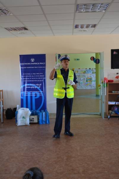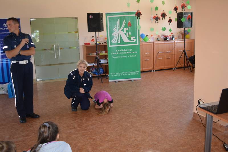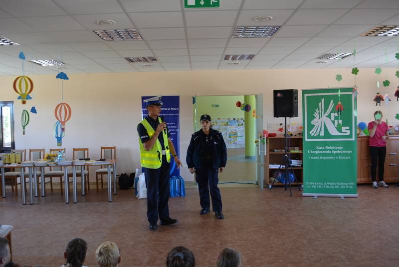 Podczas spotkania z dziećmi z terenu Gminy Chęciny zaproszeni goście poruszali tematy bezpieczeństwa w ruchu drogowym, bezpieczeństwa związanego z miejscem zamieszkania oraz udzielania pierwszej pomocy. Wszyscy uczestnicy spotkania mieli możliwość obejrzenia radiowozu policyjnego oraz wozu strażackiego i co najważniejsze każdy mógł skorzystać z przejażdżki tymi pojazdami.
