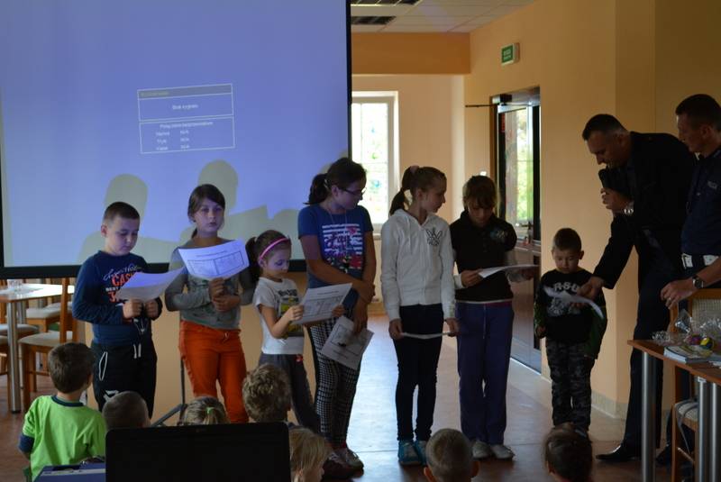 Na zakończenie spotkania rozstrzygnięty został konkurs malarski, którego tematem były bezpieczne wakacje na wsi. Wszyscy uczestnicy konkursu otrzymali upominki z rąk Burmistrza, Roberta Jaworskiego.